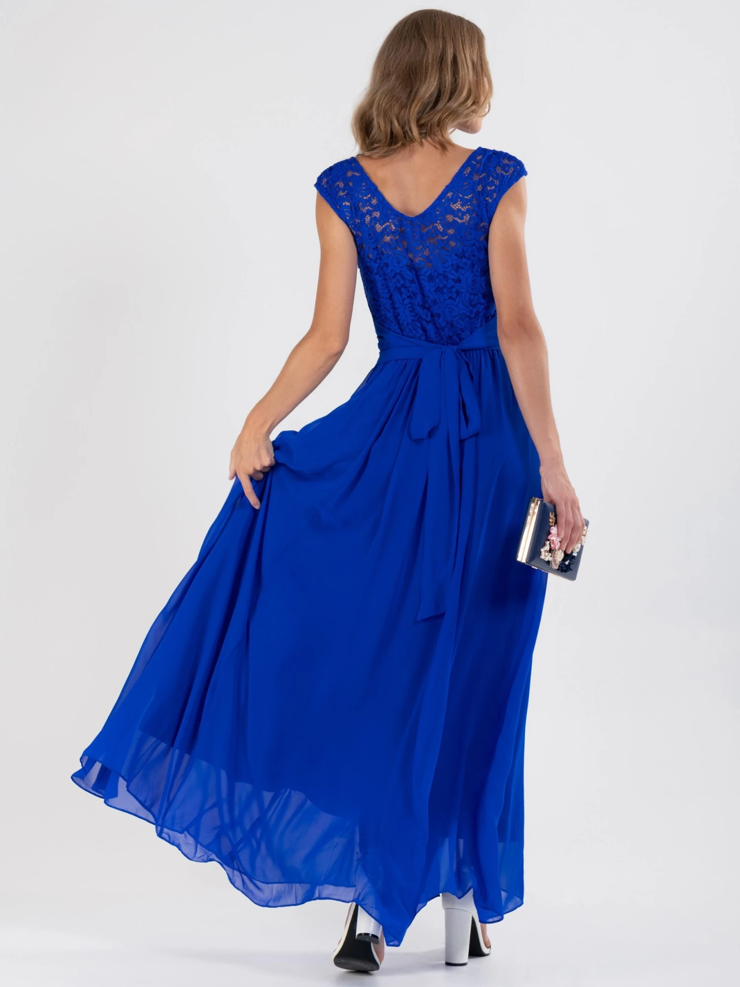 Cut to a flared full length and crafted from soft stretchy lace, this piece is designed with a stunning chiffon maxi skirt over a full lining, while the floor-lengthened cut beautifully elongates your silhouette. It is completed with an elasticated waist with self-tie belts enable you to showcase an elegant and sophisticated look.