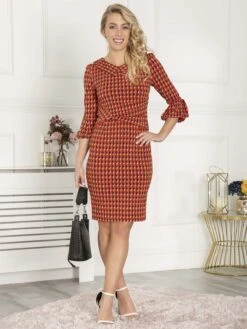 Adorned with a retro-inspired geometric print, this dress from Jolie Moi is sure to grant you a standout look. Designed with a touch of stretch that hugs the silhouette and ensures a comfy fit, this dress features a beautiful roll collar, three-quarter length bell sleeves and gathered detailing at the waist that serves to accentuate the curvature of the piece for a form-flattering fit.