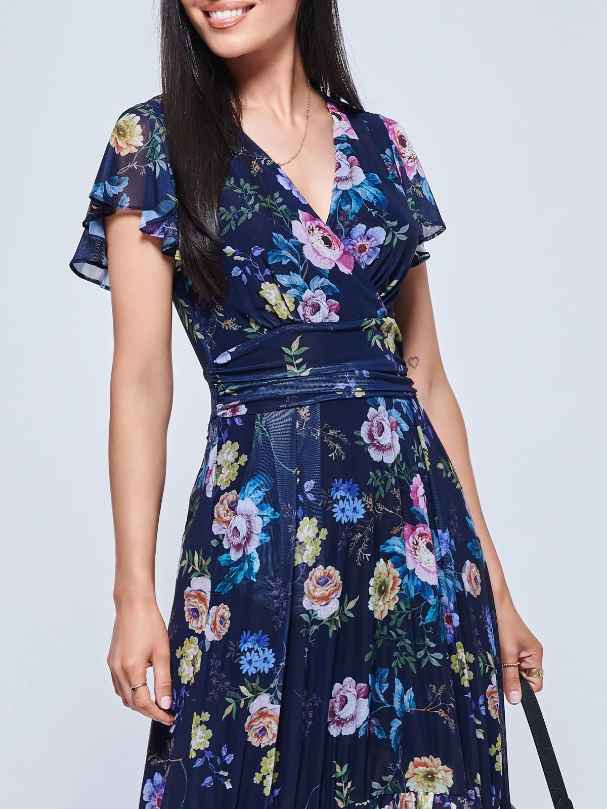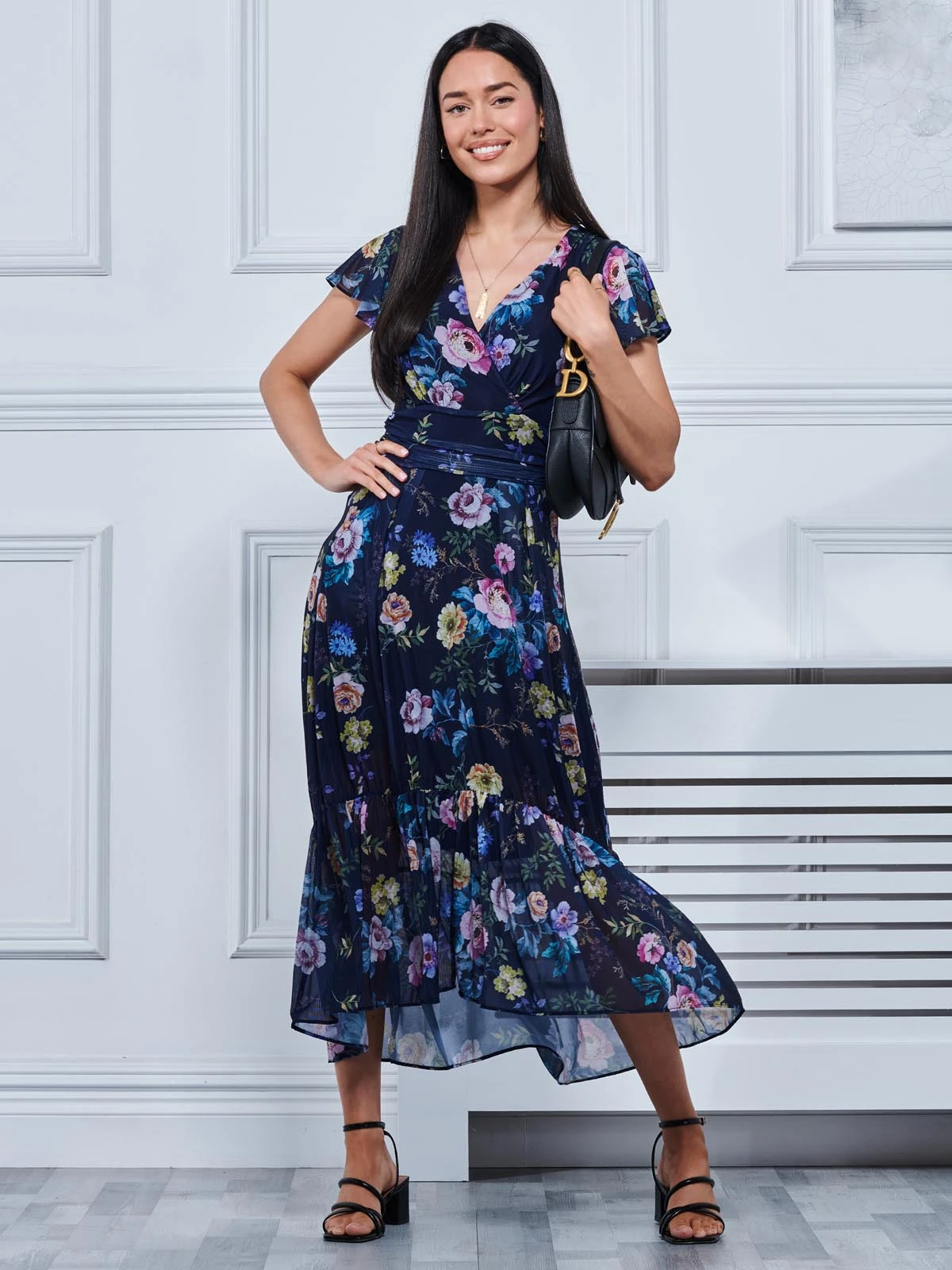 Jump into the Carleigh tiered maxi dress from Jolie Moi. Framed with a flattering wrap over v-neckline and flared cap sleeves, it will lend a feminine feel to your wardrobe. Complete with side pockets, and fully lined for comfort. This piece wears well with your favourite heels and jewellery for all-out glamour.