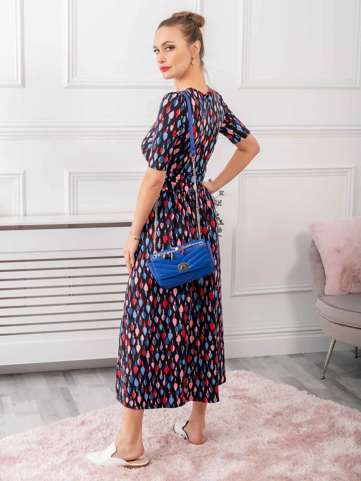 This dress from Jolie Moi makes an impact with a bold print and flowing maxi hem. Cut from soft and stretchy jersey fabric for long-lasting comfort, the cross-over V-neck runs into a ruched elasticated waistband that draws in your silhouette for a form-flattering shape. Finished with side pockets for easy wear, pair with anything from canvas trainers to sleek point-toe heels for summer socials and special occasions. Â