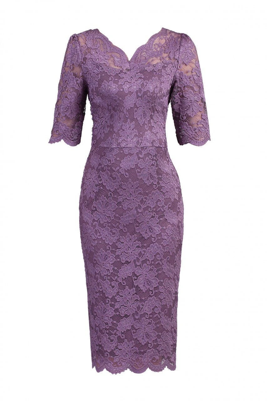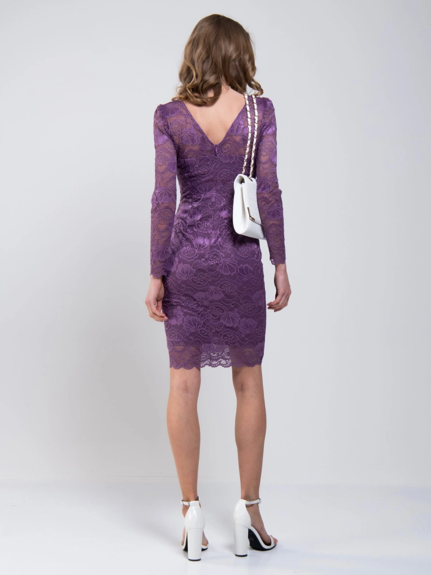Crafted from a delicate floral lace overlay, with a hint of stretch for comfort. This classic design features a scalloped V-neckline and a plunging back, elbow-length sleeves and metallic zip fastening to the reverse.Â