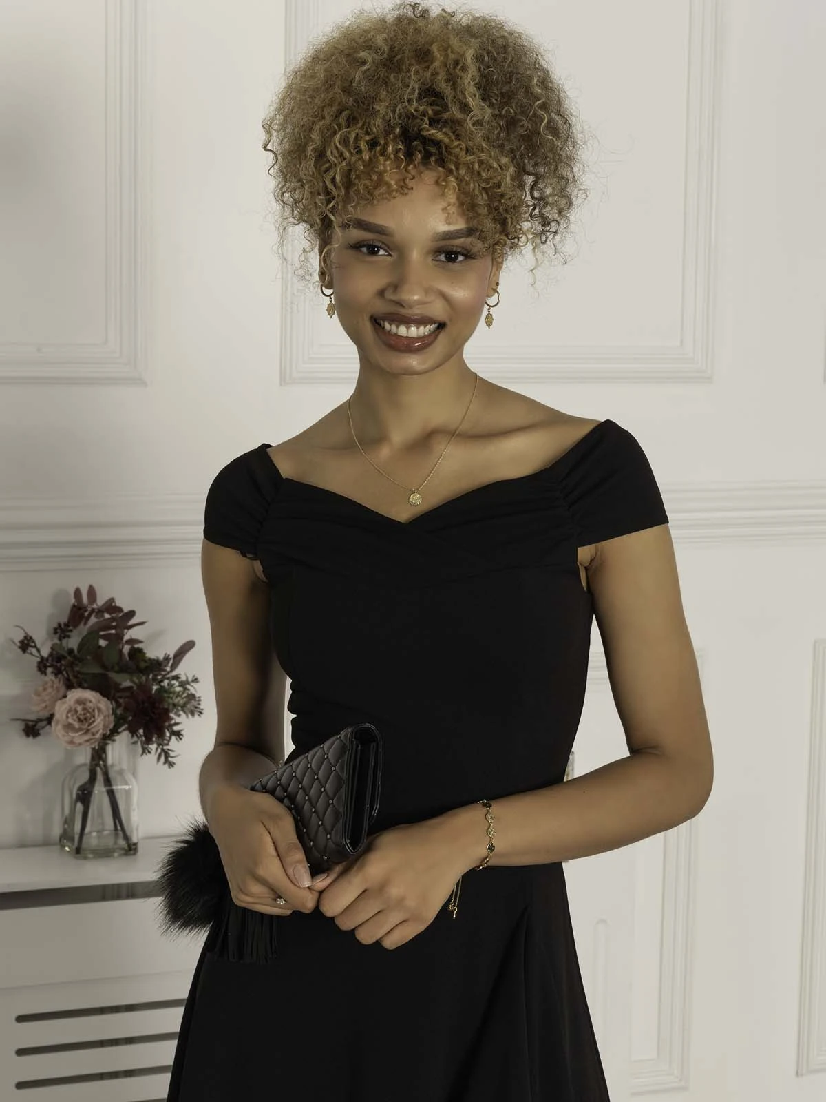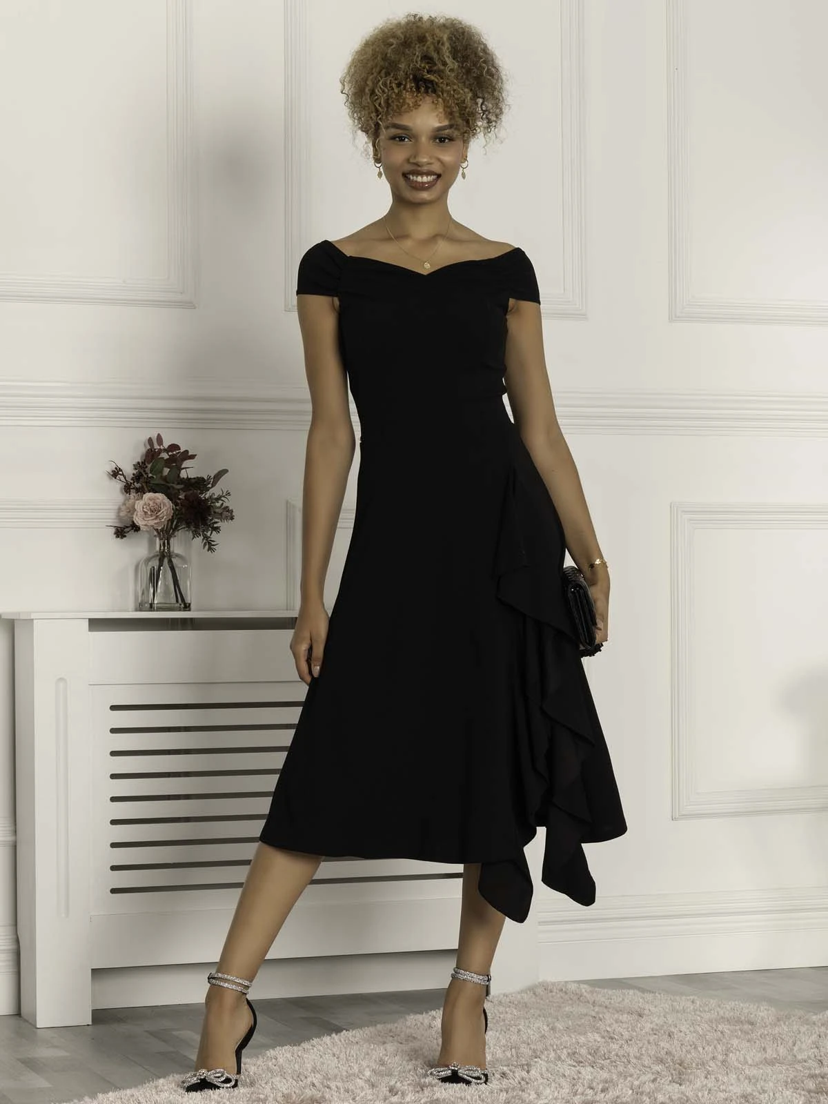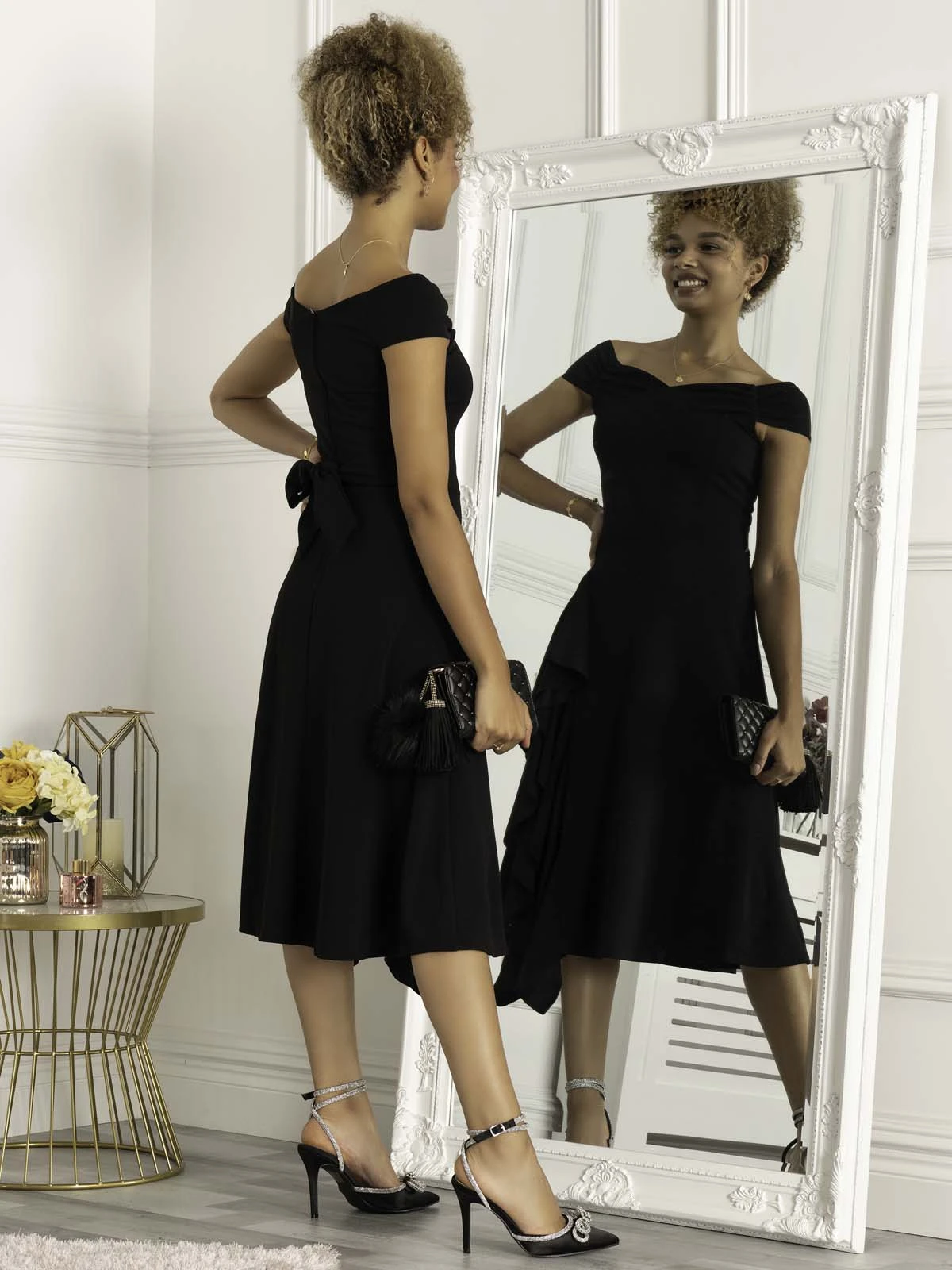 Bringing you a sense of elegance and style combined into one beautiful dress. The Desiree flare dress is made from a stretchy knitted material for all day comfort. It features a self tie belt at the waist to cinch in your waist without being too tight. The sleeves drape just off the shoulder opening up the gorgeous subtle v-neckline. To add an extra touch of style there is a frilly accent on the front of the dress. Match with a pair of heels to be the centre of attention at your next event.