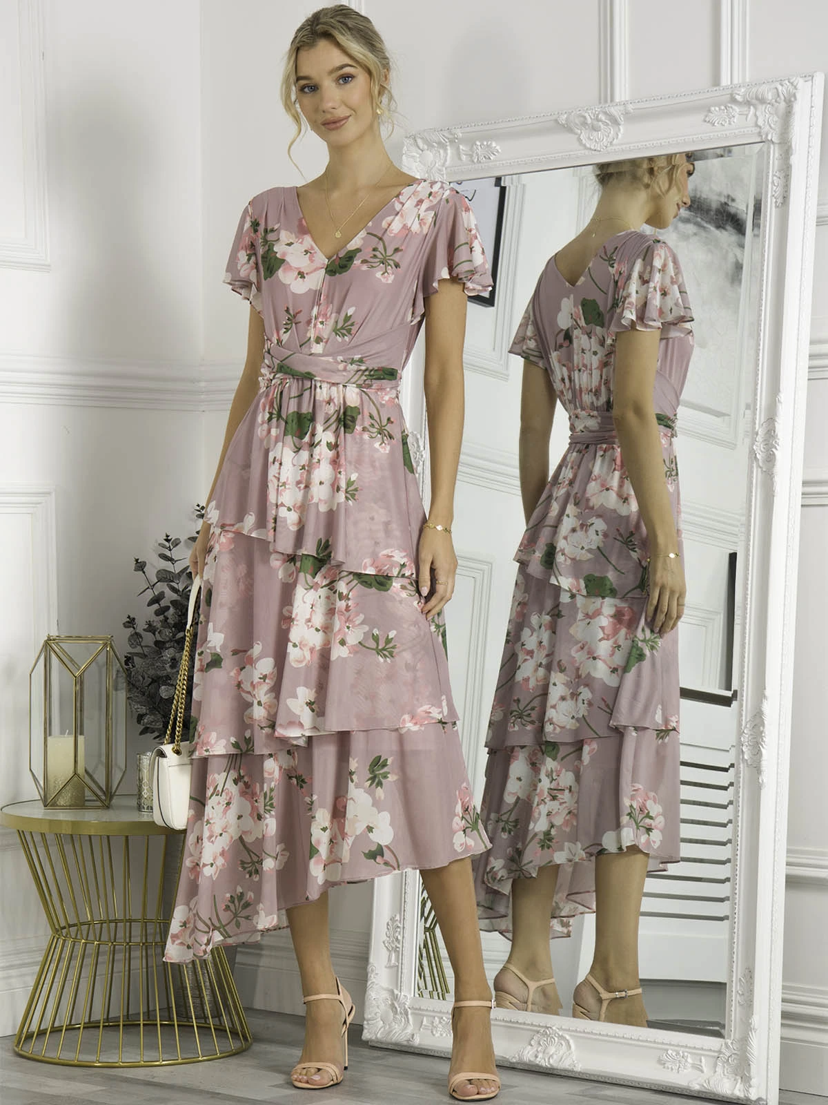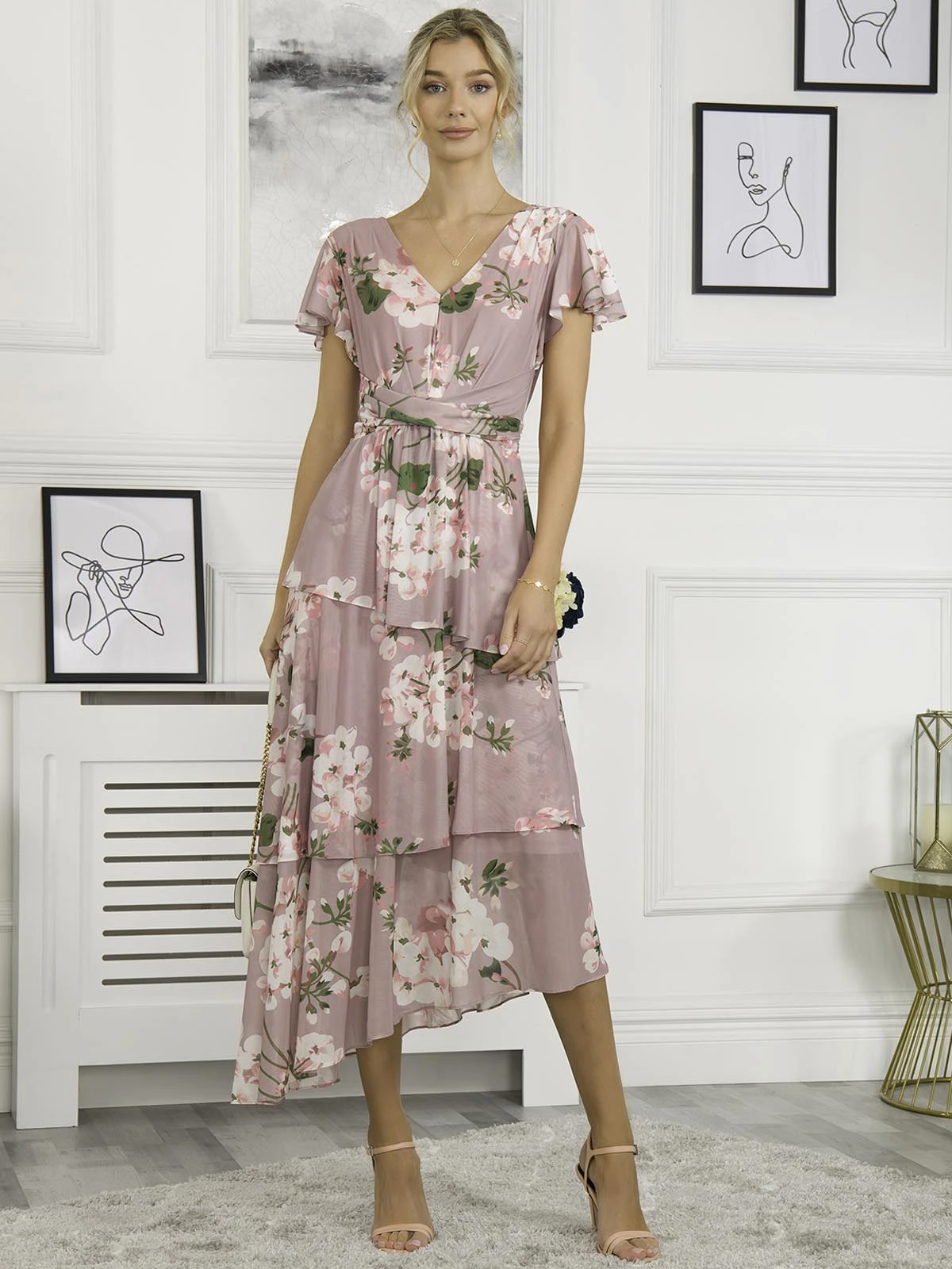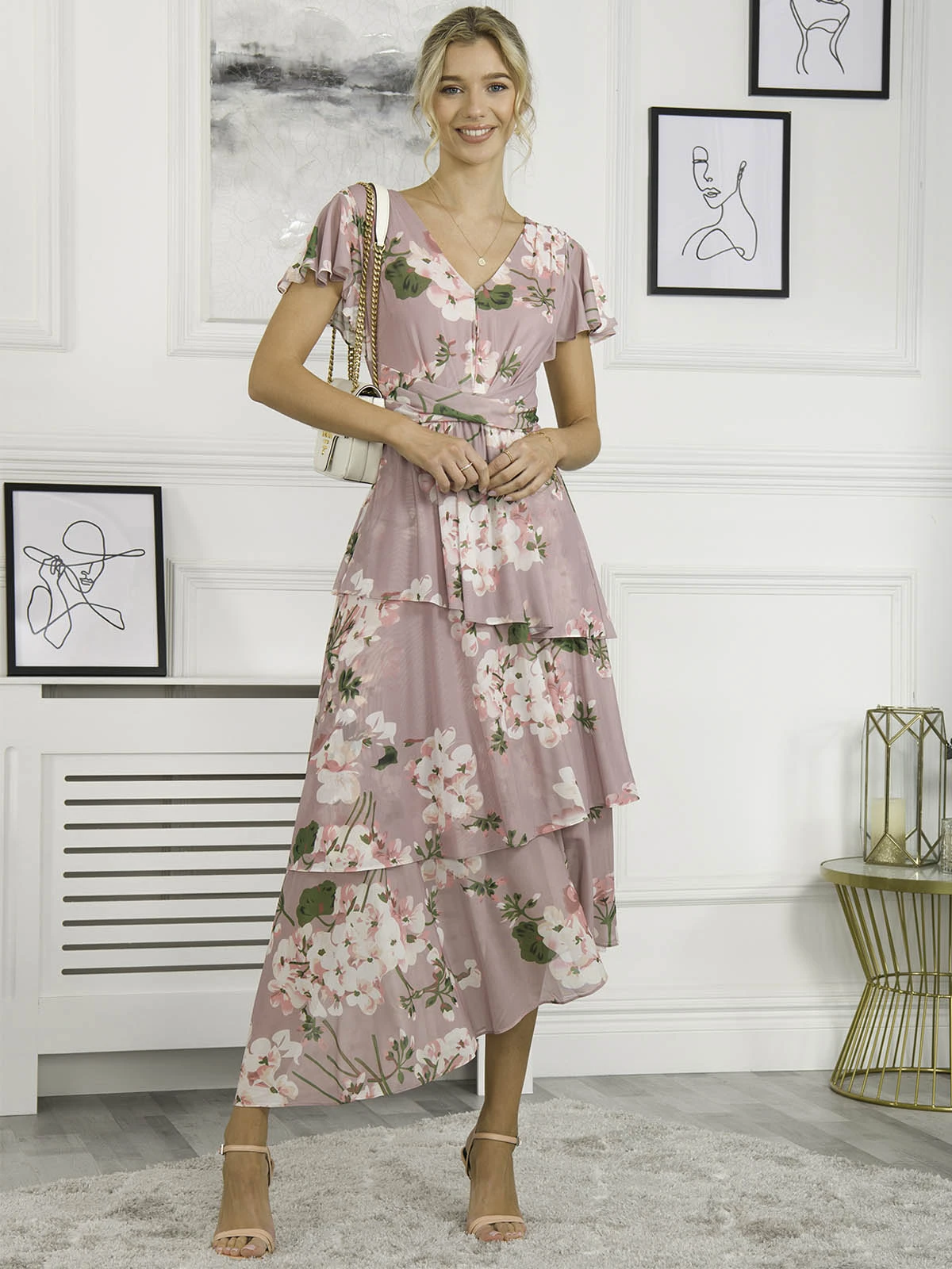 An elegant option for all your special occasions, the Elodie maxi dress by Jolie Moi is fashioned with pretty florals for added charm. Made from a soft knitted mesh fabric, it’s framed with a rounded v-neckline, a three tiered hemline and short frilly cap sleeves. Add a pair of strappy heels and a clutch for an event-ready look.