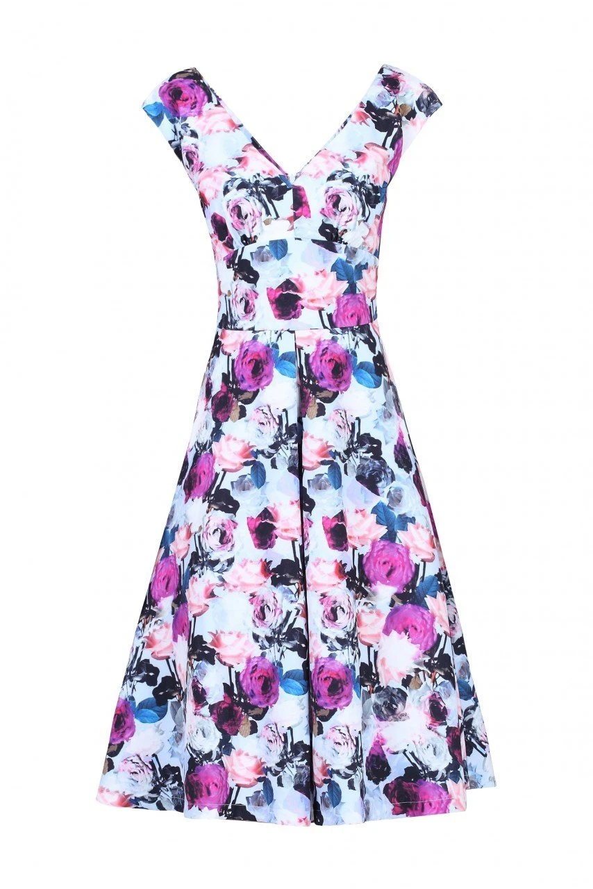 Vintage Floral Print Dress by Jolie Moi, a 50’s inspired dress featuring the classic V neckline, skater style silhouette, volume towards the hem for a flared look. Pair with heels and a clutch bag to go.Â