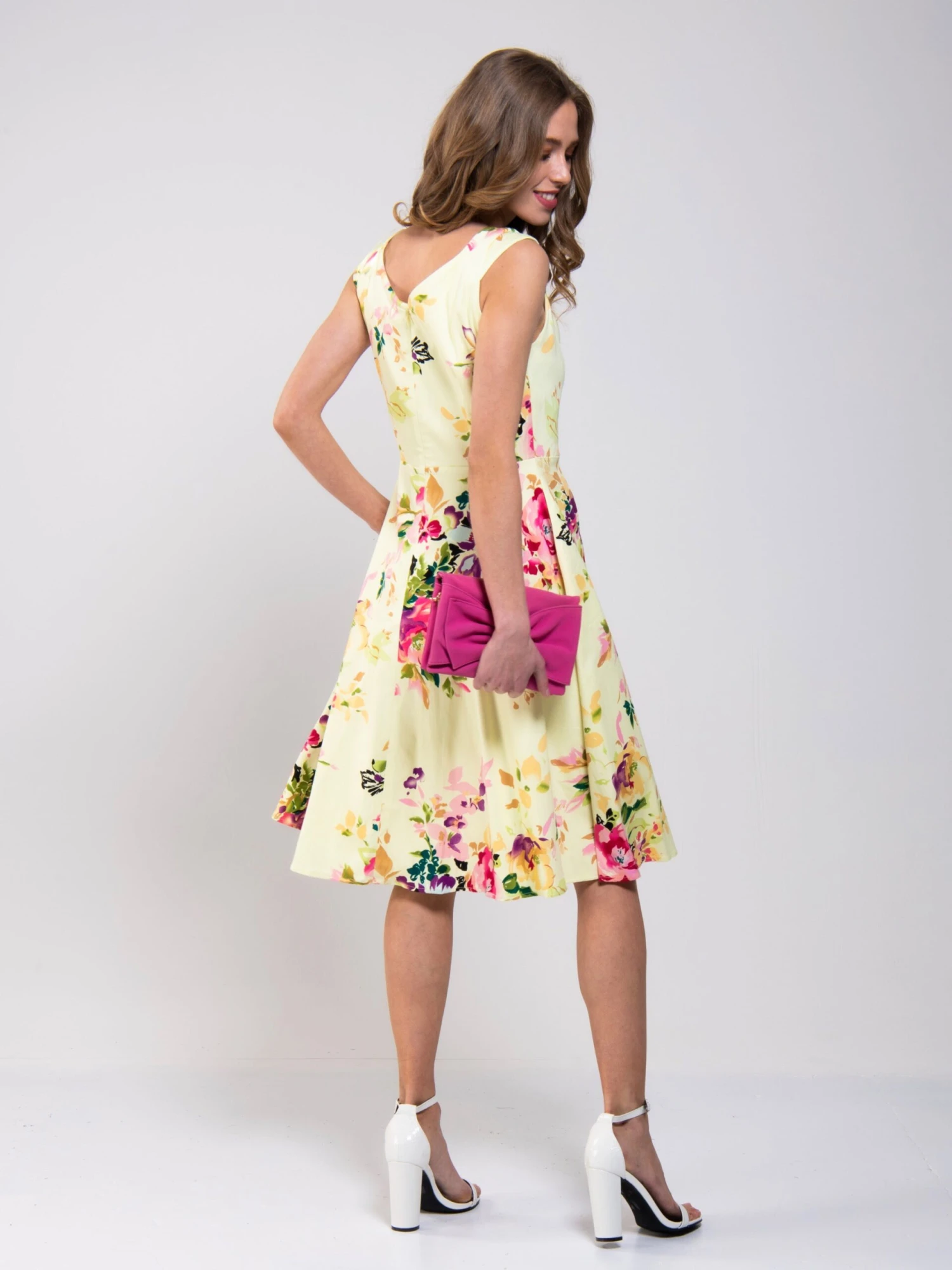 Intricately crafted from a lightweight material with a hint of stretch, this capped sleeve dress balances skin-baring and coverage flawlessly. Designed with a statement floral print, seamed waistline and an extra fully-lined mesh layer to create a voluminous silhouette.