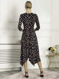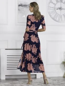 Get ready in style with the Gretta midi dress from Jolie Moi. Covered from top to bottom in beautiful floral pattern print. Crafted from our non-static and crease-proof jersey material. Featuring 3/4 length sleeves, and a wrapped v-neckline that cinches in at the waist for a form-flattering silhouette.