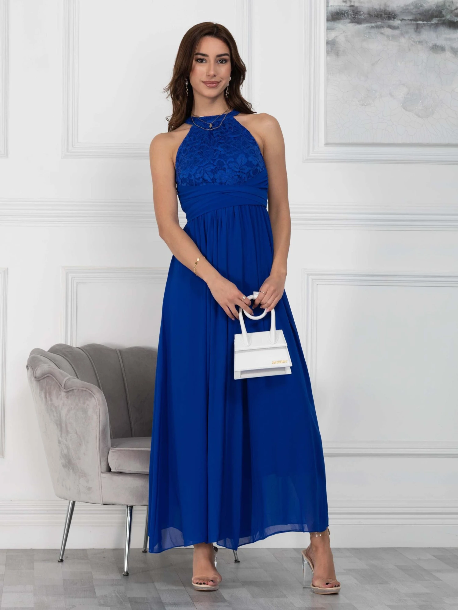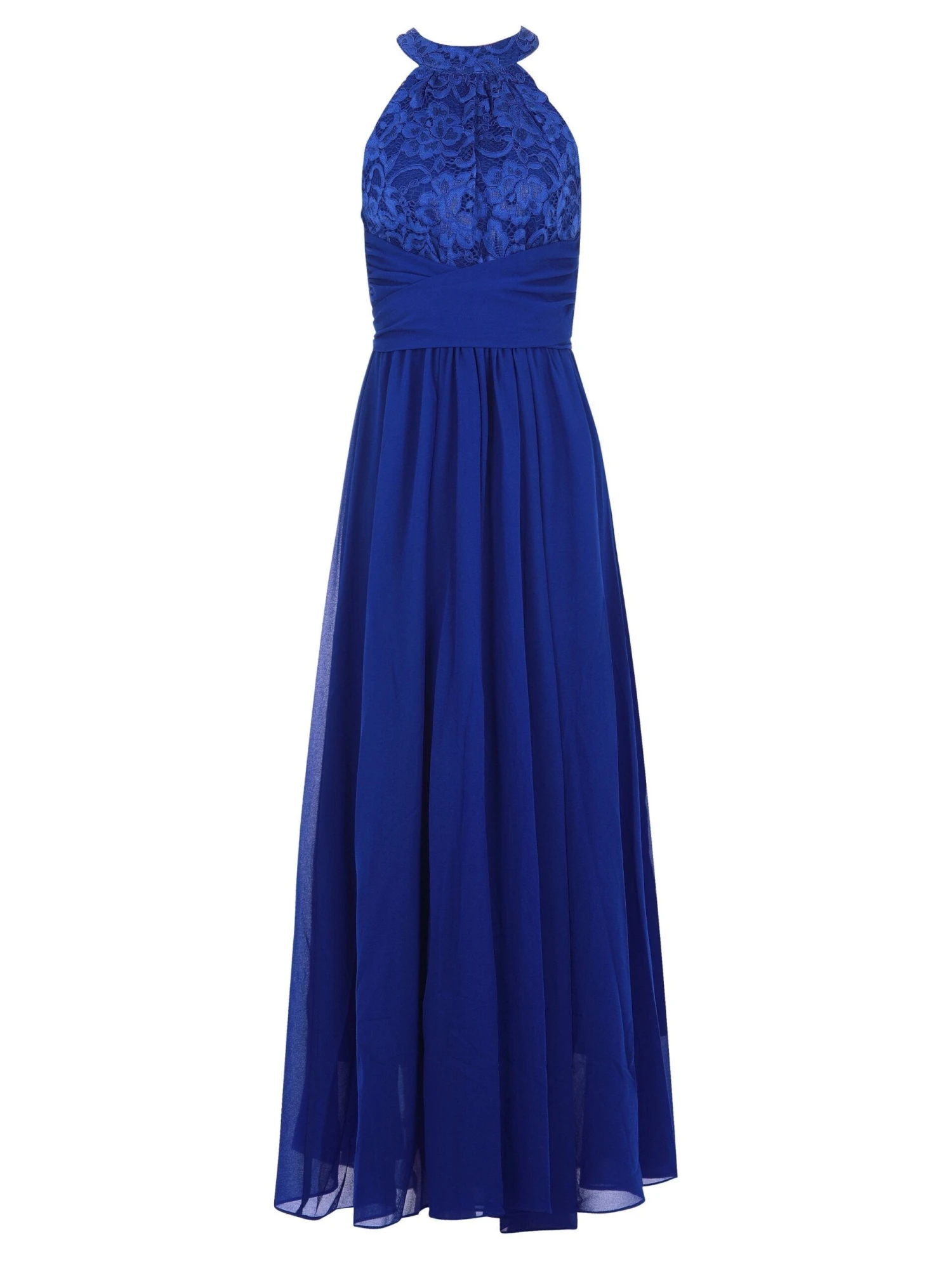 Make those special events unforgettable with this striking Jolie Moi dress. Cut to a flared full length and crafted from soft stretchy lace, this piece is designed with a stunning chiffon maxi skirt over a full lining, while the floor-lengthened cut beautifully elongates your silhouette. It is completed with a elegant halterneck with crossover twist tie belt, self-tie belts enable you to showcase an elegant and sophisticated look. Pair with high heels and a clutch bag to create a gorgeous ensemble.