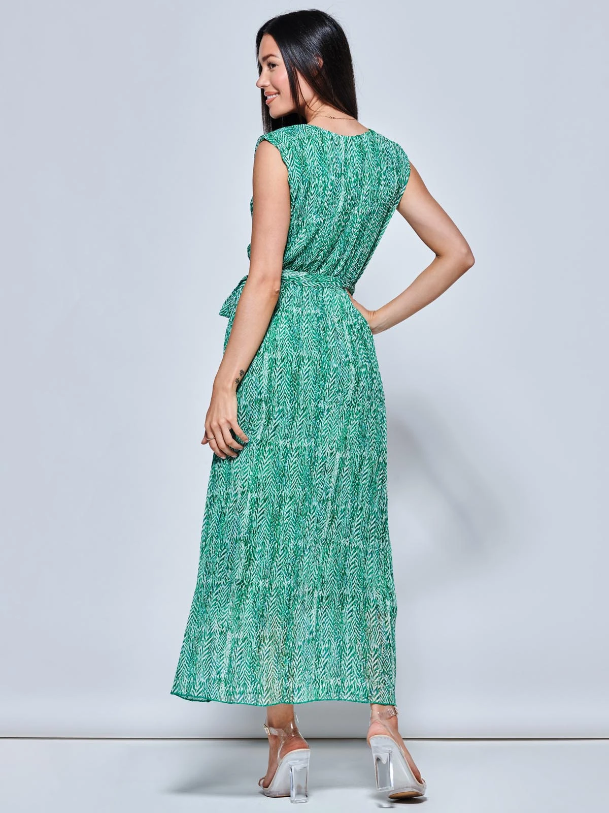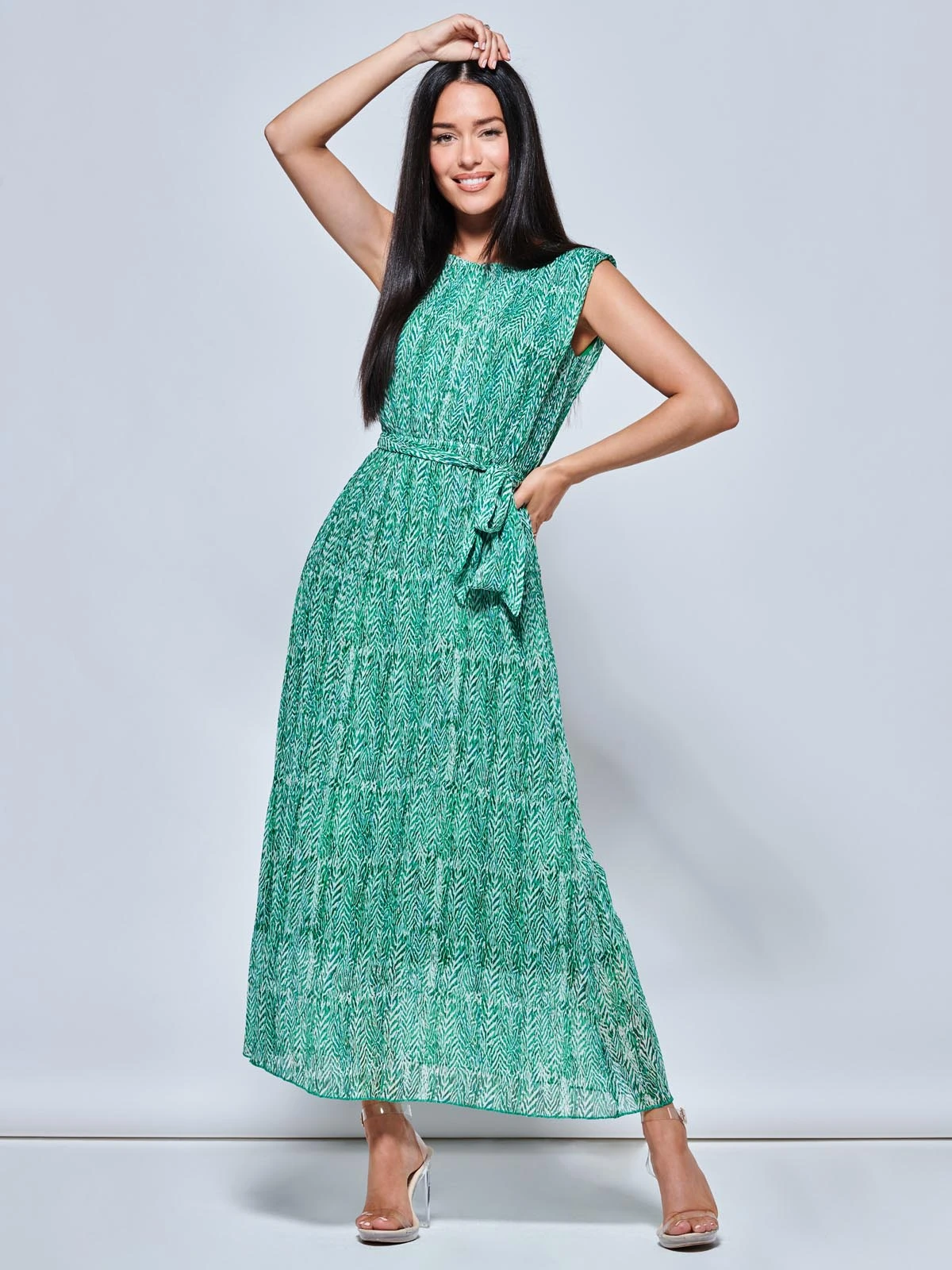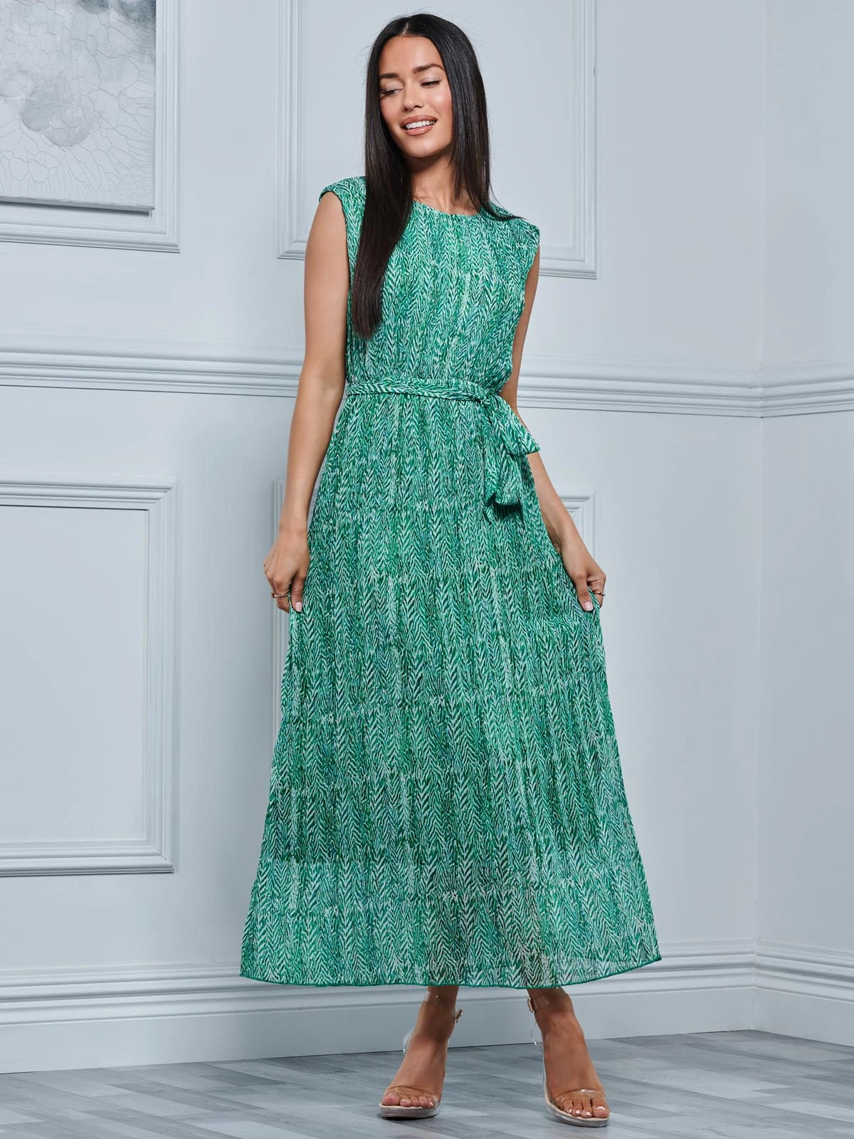 Get ready in style with the Hollyn pleated chiffon maxi dress from Jolie Moi. Crafted from 100% polyester, the dress is covered from head to toe in a bold abstract pattern print that is sure to standout in any fashionistas wardrobe, with a beautiful sleeveless design and a self-tie waist.