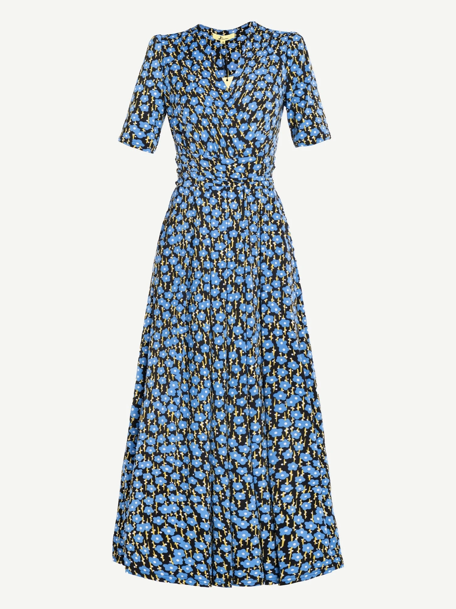 Cut from a soft and fluid blended jersey, this cross-over front V-neck dress is designed with a ruched elasticated waistband that draws in your silhouette for a form-flattering fit. The dress has two side pockets for carrying essentials such as your lipstick for that afternoon top-up.