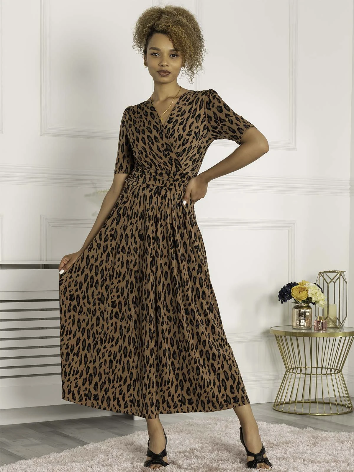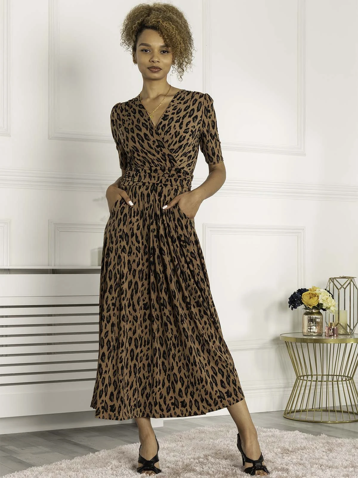 This dress from Jolie Moi makes an impact with its striking animal print and flowing maxi hem. Cut from soft and stretchy jersey fabric for long-lasting comfort, the cross-over V-neck runs into a ruched elasticated waistband that draws in your silhouette for a form-flattering shape. Finished with side pockets for easy wear, pair with anything from canvas trainers to sleek point-toe heels.