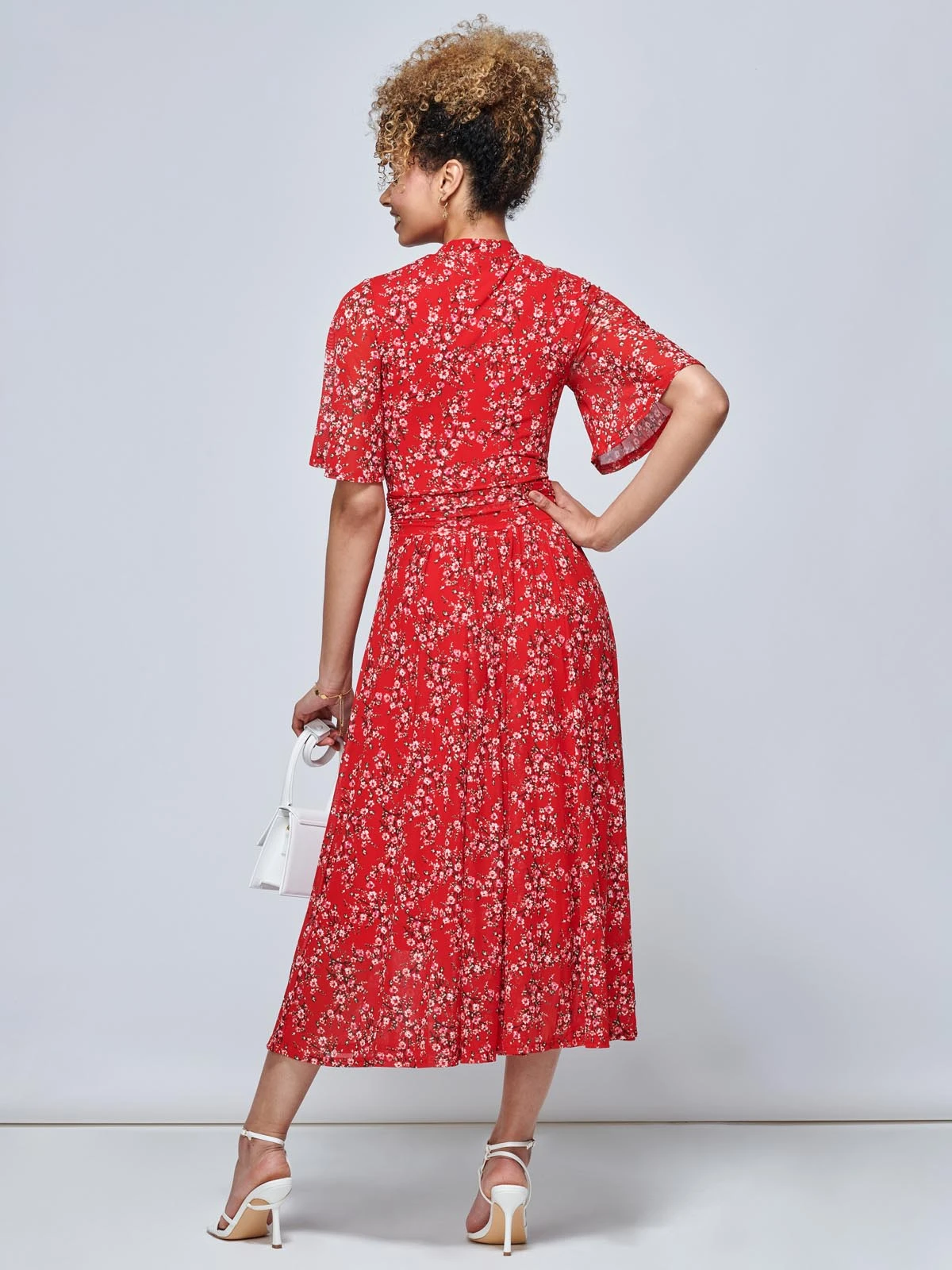 Bring a feminine edge to your occasion wear with this stylish midi dress from Jolie Moi. Beautifully updated with a floral print, it s made from lightweight mesh fabric thats soft-to-touch and smooth. With an elegant keyhole neckline, floaty short sleeves and a flared skirt that flows, it can be paired with heels at your next special event.