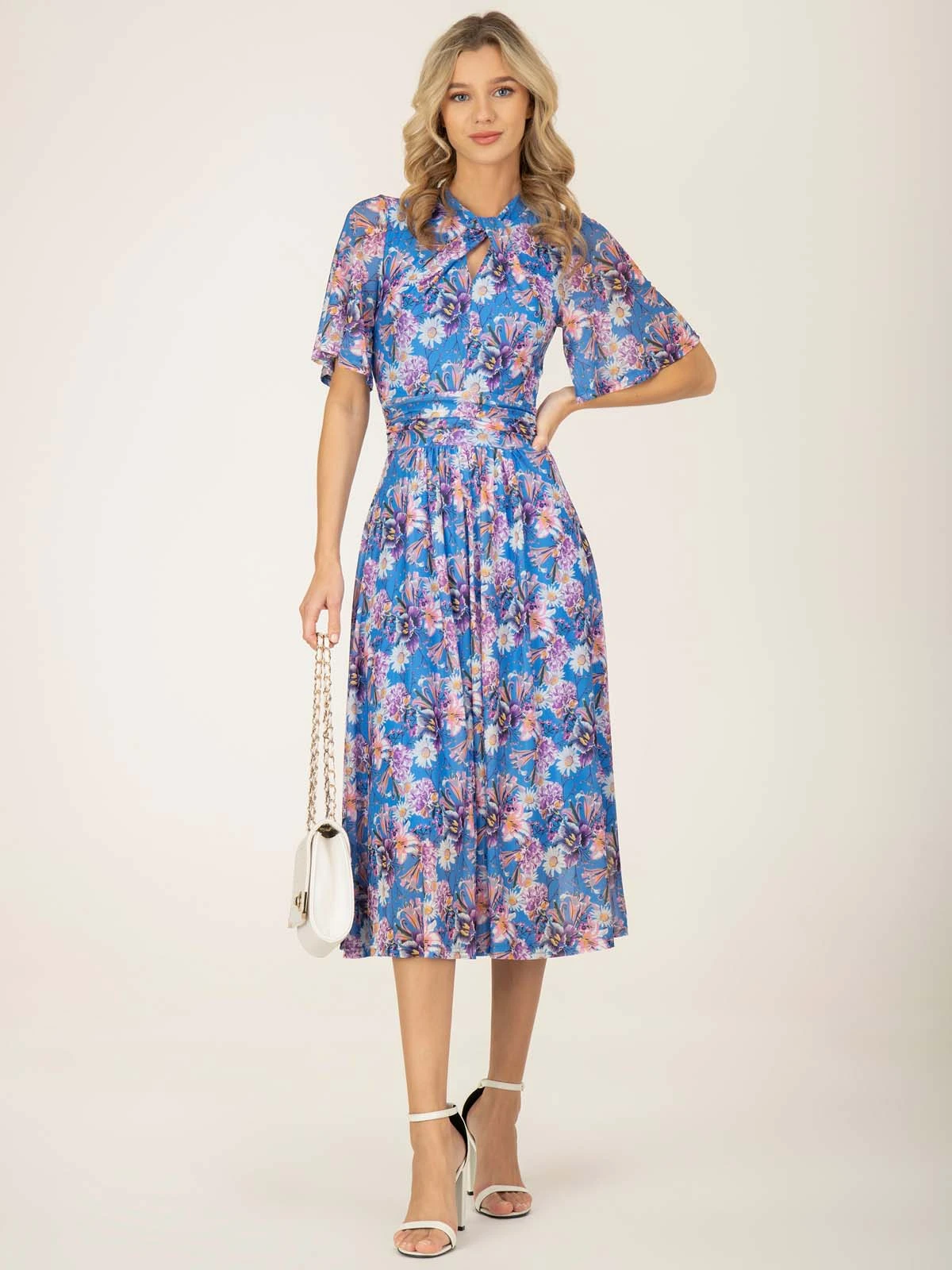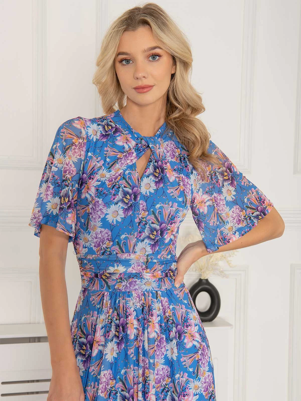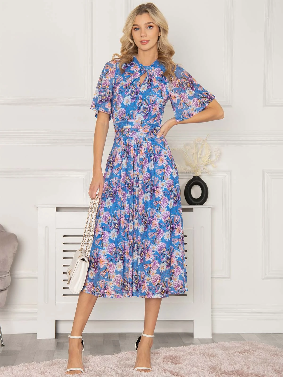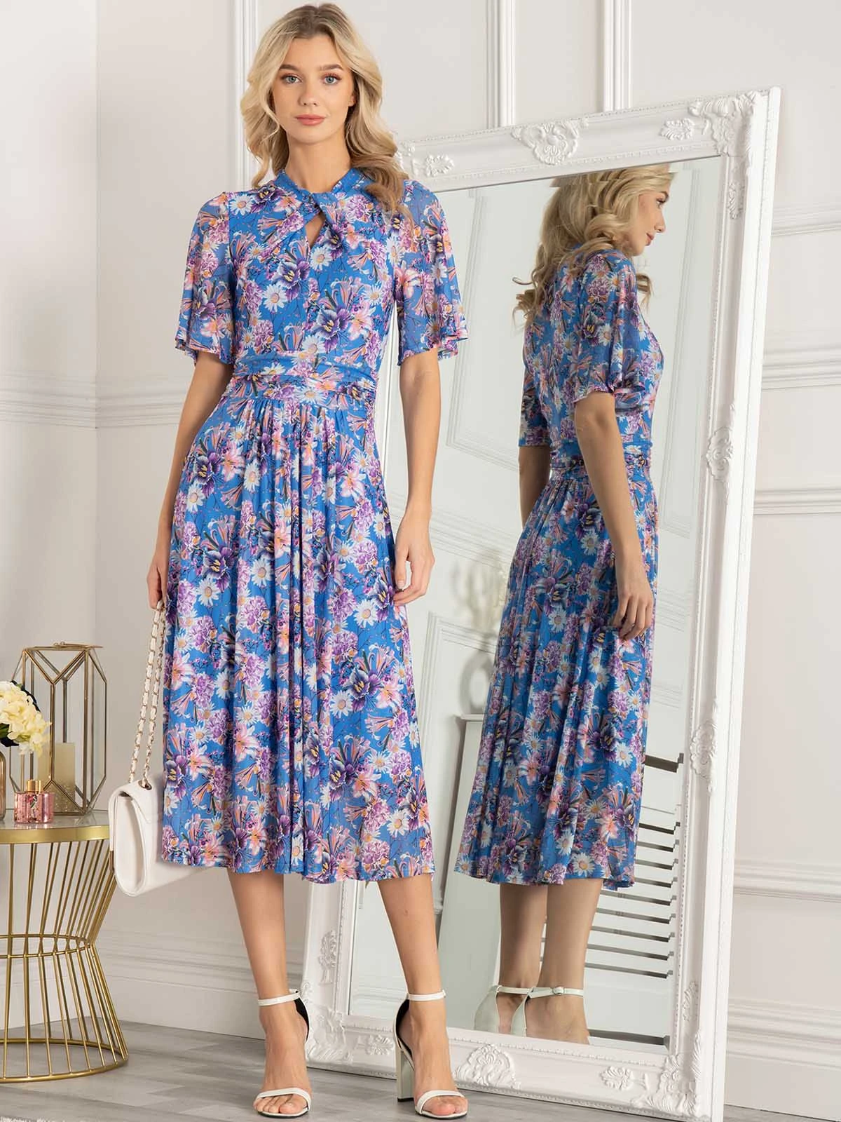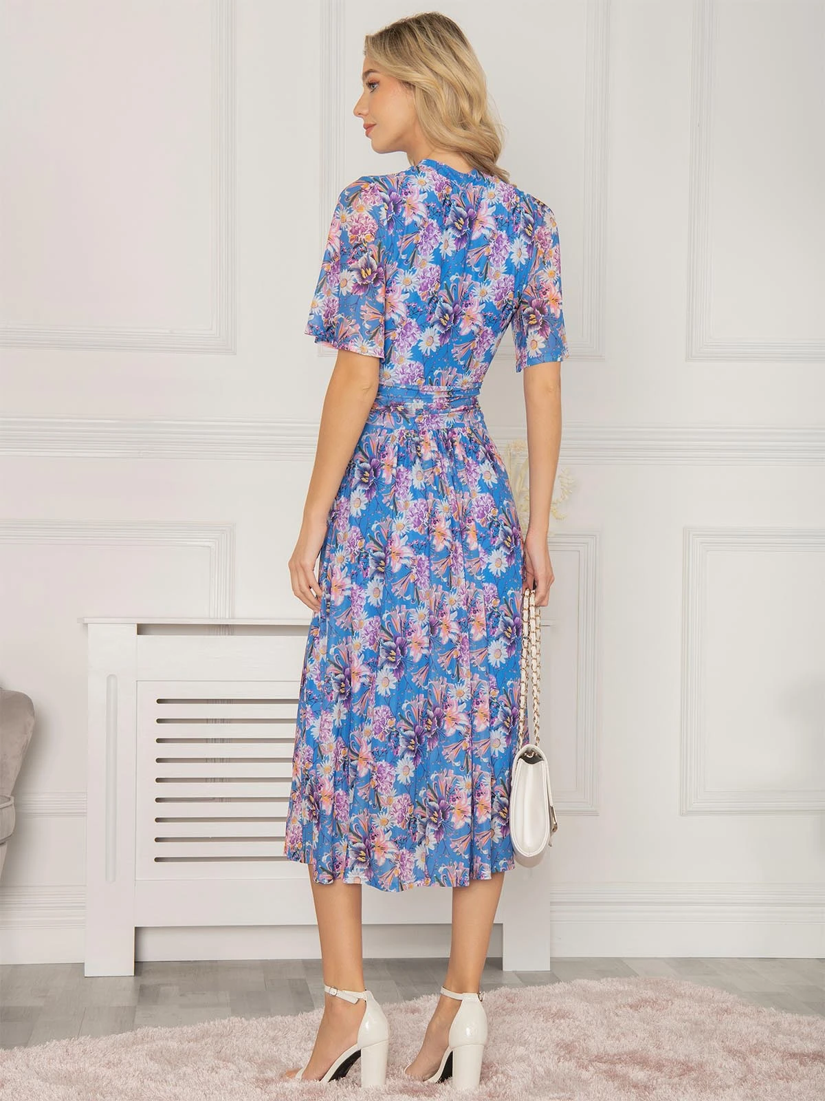 Flaring out at the hem for added movement, this midi dress by Jolie Moi boasts a floral flourish for added appeal. Accentuating the figure with a wrap-over front and short sleeves, it is the epitome of summer chic.
