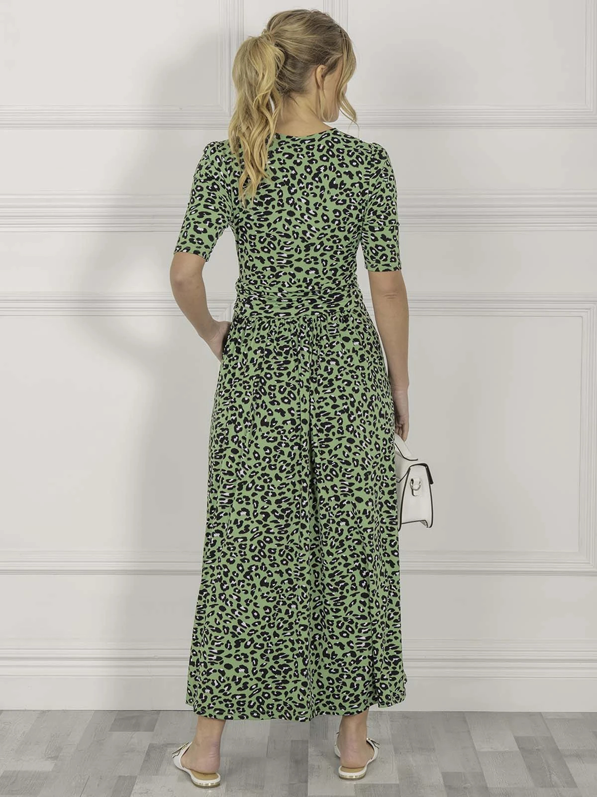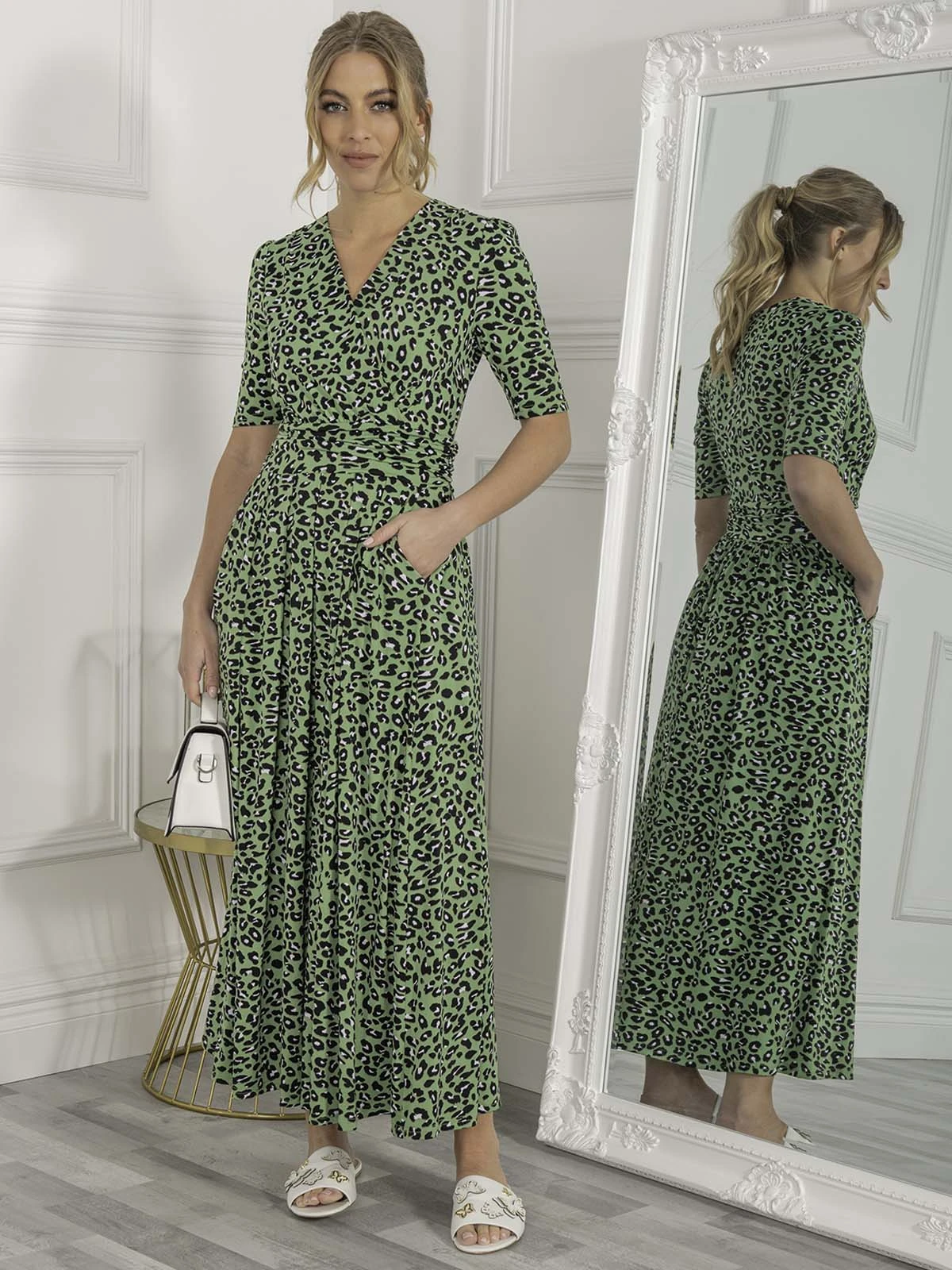 Cut from comfortable stretchy jersey fabric, this cross-over knot front V-neck dress is designed with a rushed elasticated waistband which draws in your silhouette for a form-flattering fit. Finished with side pockets for easy wear, pair with heels for an evening out.
