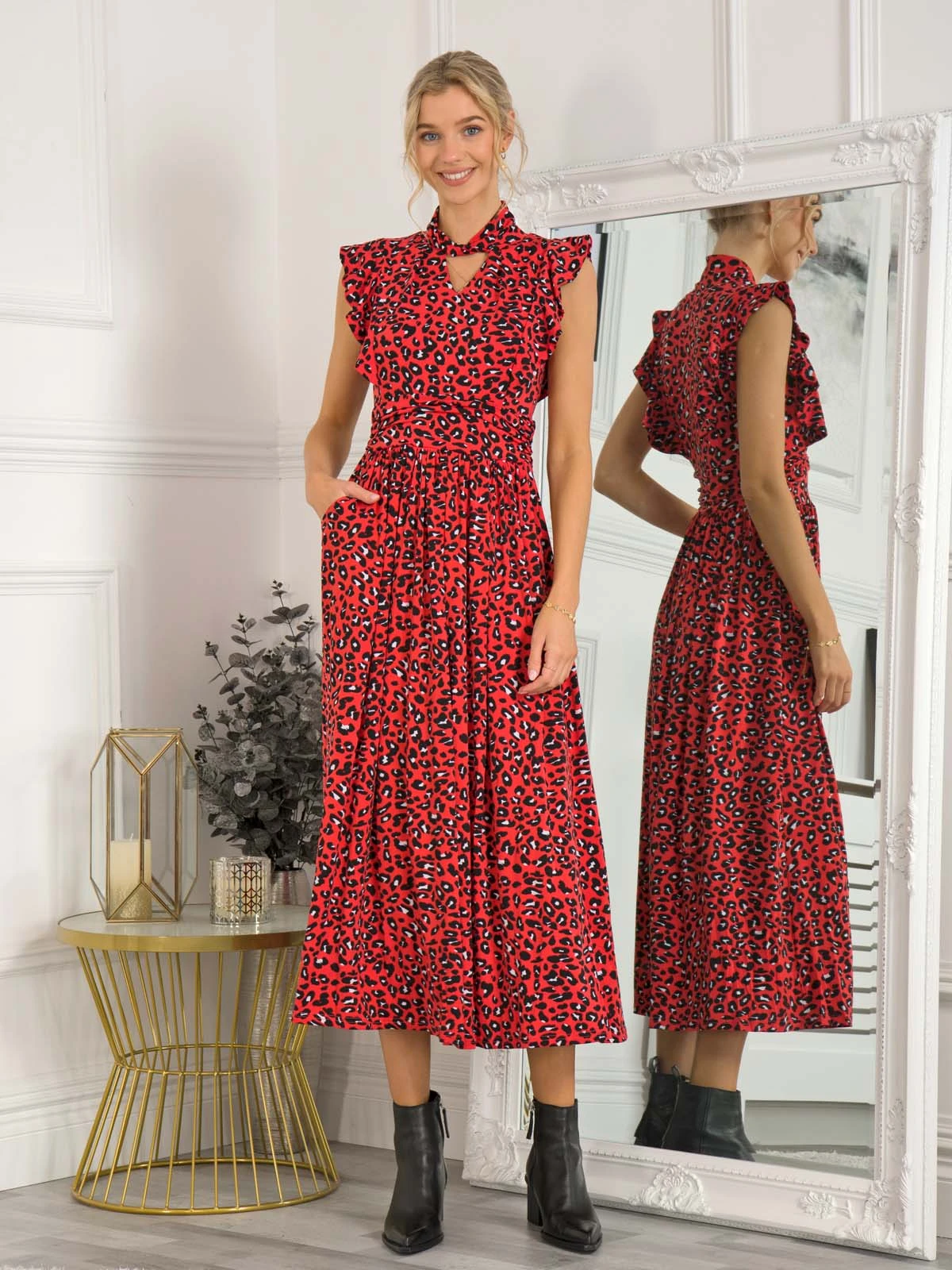 This dress showcases a ruffle shoulder detail that we just can’t get enough of. Your go-to print just got better in this Doris dress from Jolie Moi. Made from smooth jersey and cut to a generous fit & flare fit, this printed maxi dress is designed with a smart funnel neck with a twisted collar and keyhole cut-out detailing at the front. Finished with side pockets for easy wear and a nipped-in ruched waistband to create a smooth shape and falls to the ankle adding an elegant flow. It would be a beautiful choice for a wedding guest outfit or summer socials.Â
