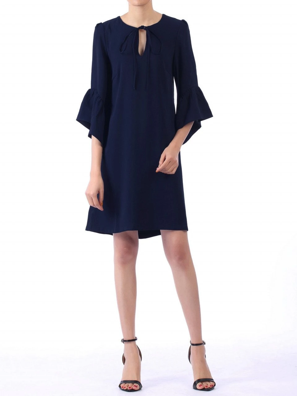 Exhibiting a vintage-inspired style suitable for many an occasion, this tunic dress from Jolie Moi is the perfect item to throw on and go. Boasting attractive three-quarter length sleeves with flared frill cuffs and chic necktie, this classic dress has a relaxed fit thanks to the pretty swing cut and fluid fabrication. Try wearing with black leggings and boots for an effortlessly stylish look. Â