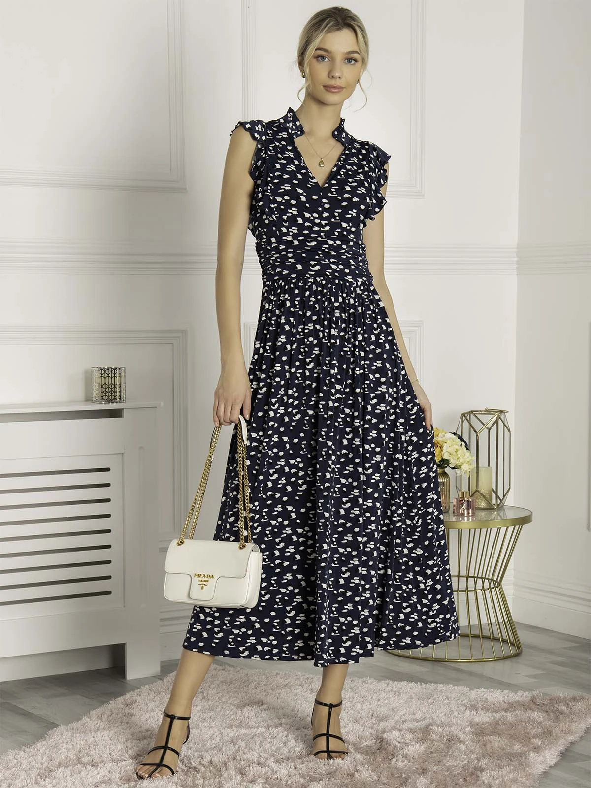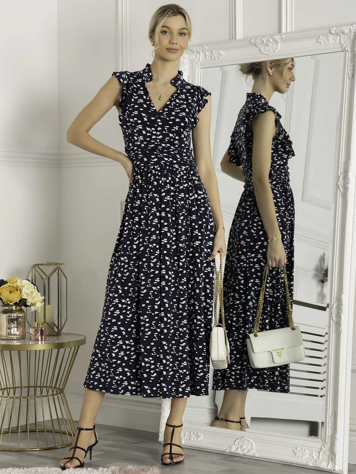 Given a romantic update, this dress from Jolie Moi will take you from season to season. Made from soft and stretchy jersey fabric in an elegant maxi silhouette, it features a V-neckline with a stand collar, an elasticated waist and frills at the shoulder. Dress down with trainers or up with block heels.