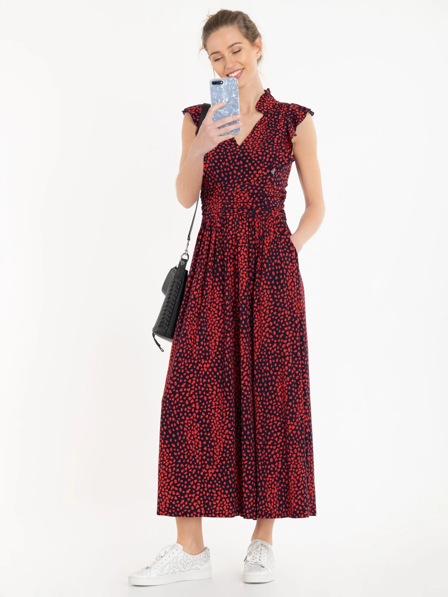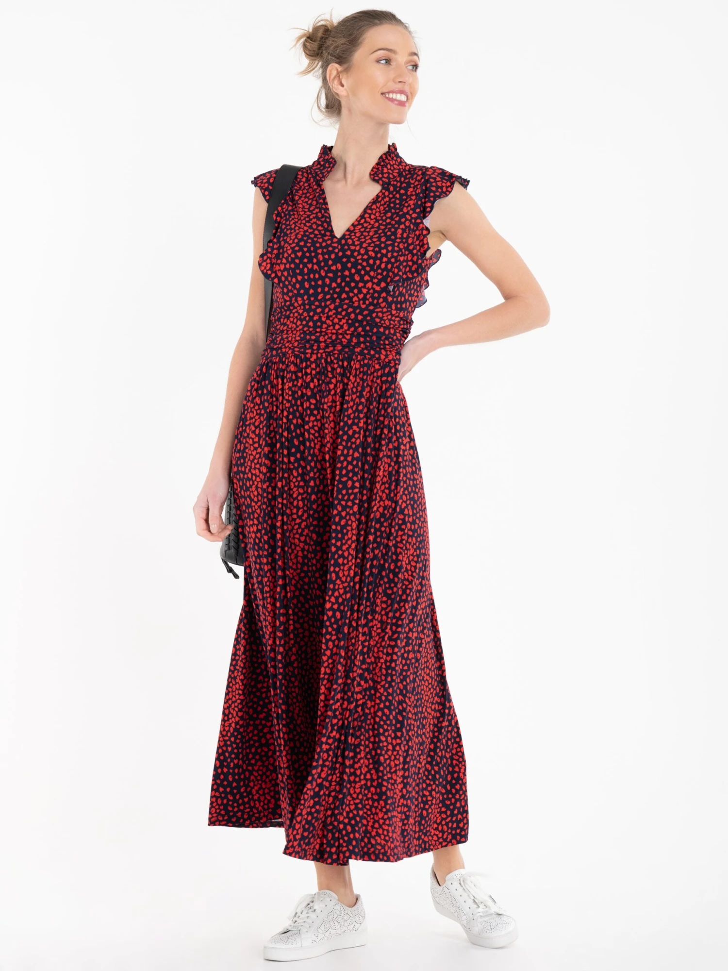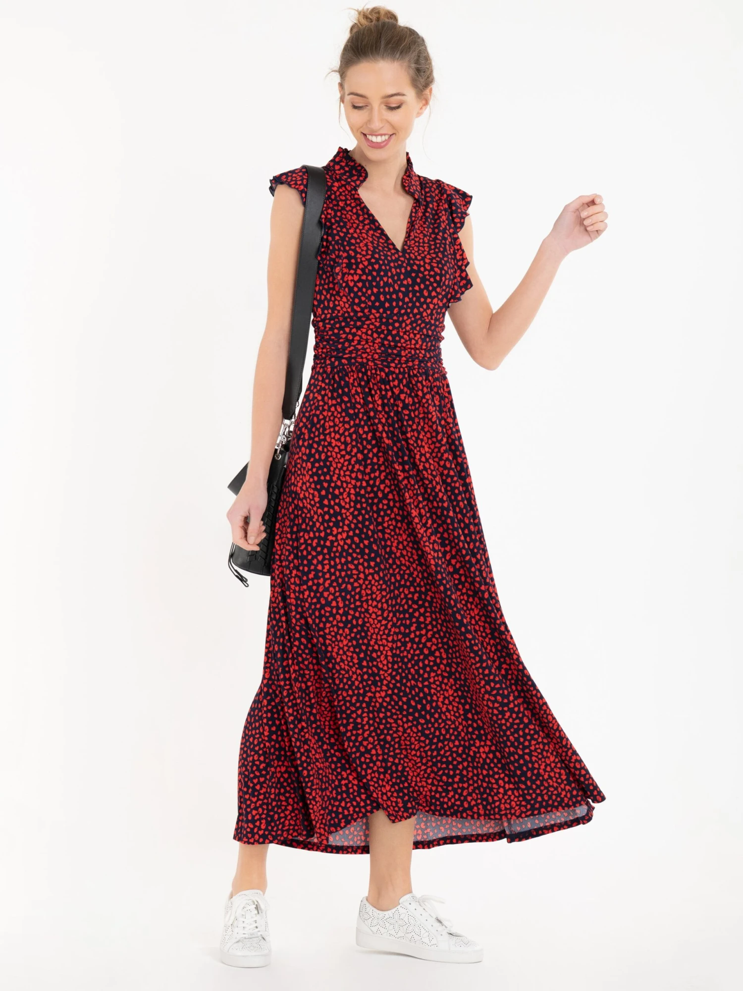 Given a romantic update, this dress from Jolie Moi will take you from season to season. Made from soft and stretchy jersey fabric in an elegant maxi silhouette, it features a V-neckline with a stand collar, an elasticated waist and frills at the shoulder. Dress down with trainers or up with block heels.