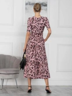 Crafted from a soft jersey fabric with a bit of stretch for comfort, this dress drapes effortlessly on the body. With a cinched belted waist, a halter neckline and a pleated skirt, the dress creates a flattering longline silhouette.