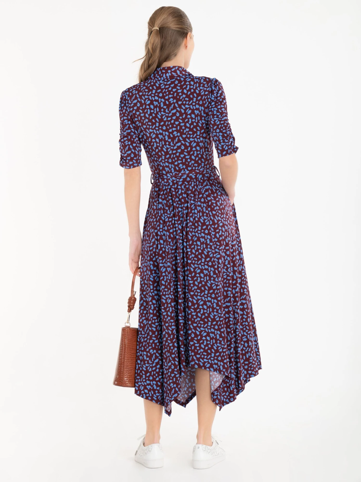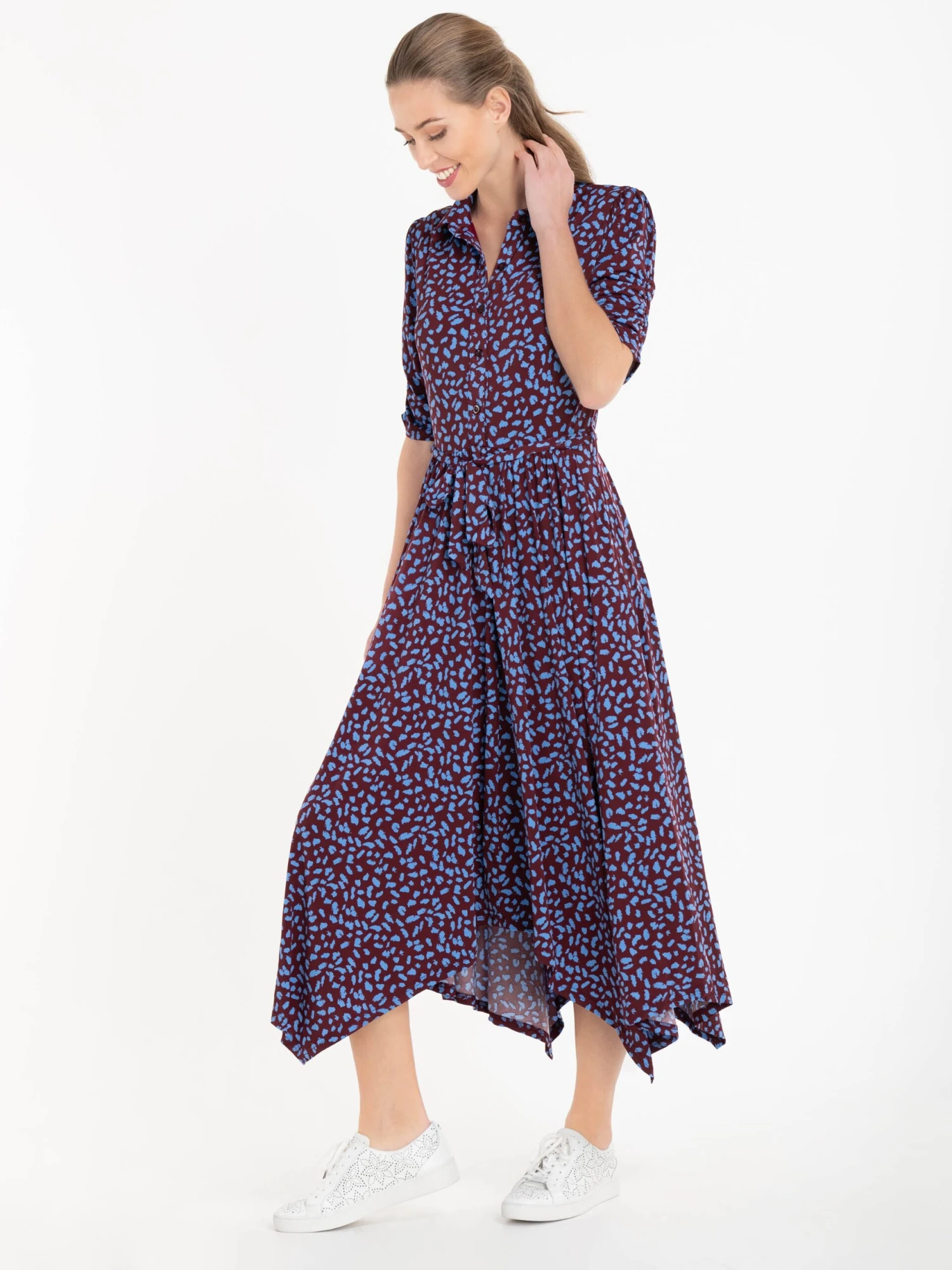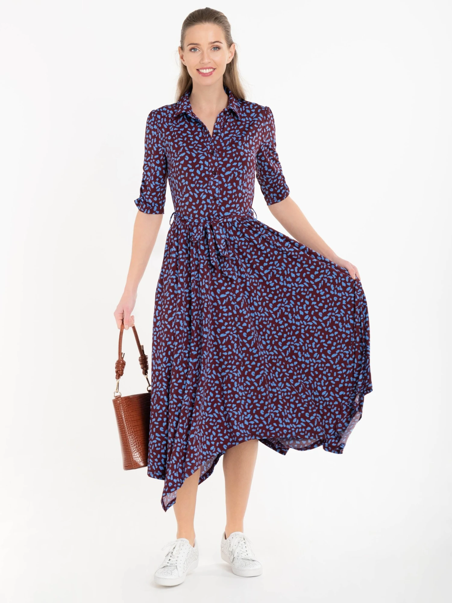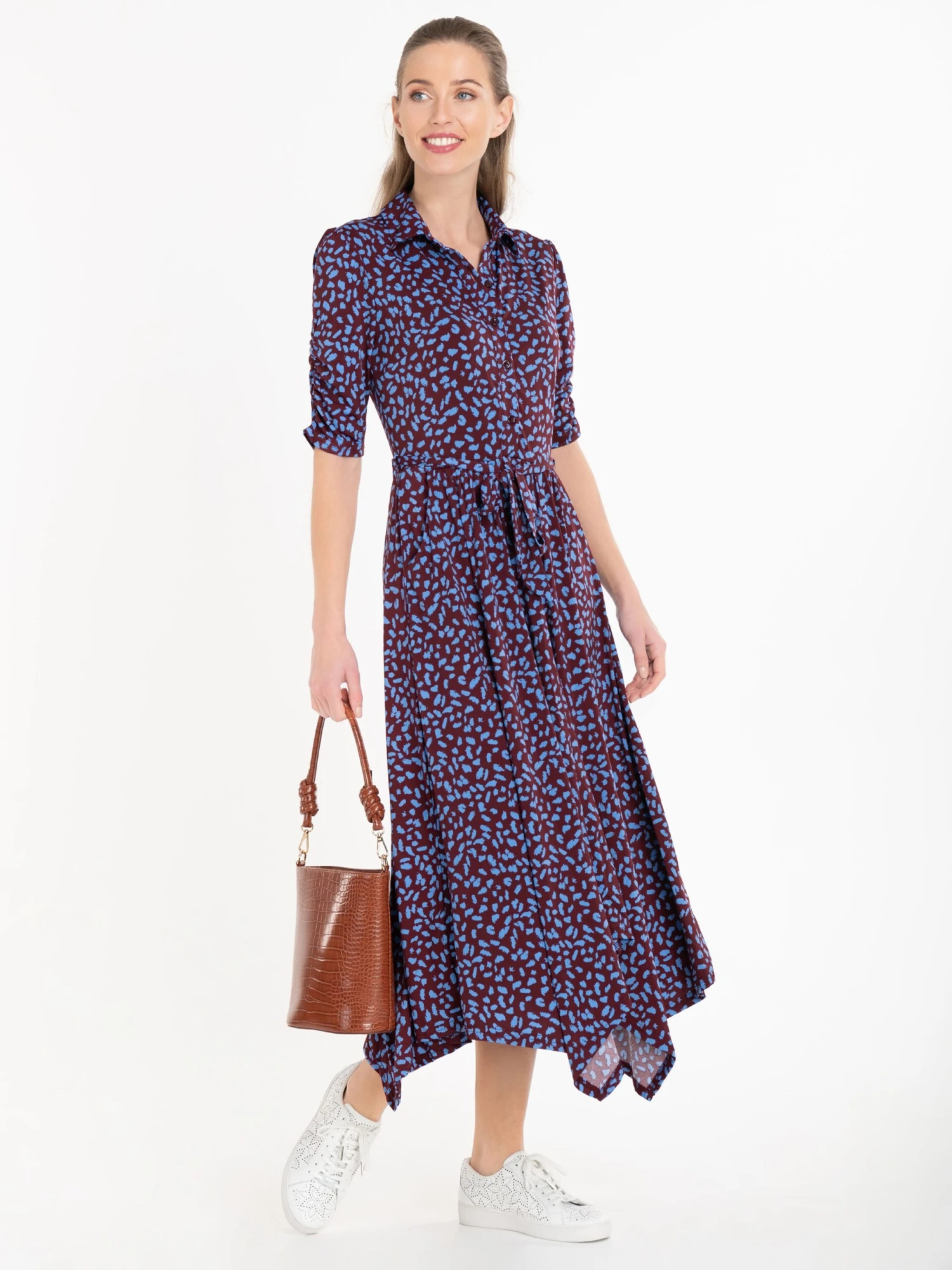 This Jolie Moi shirt dress comes with a flowing handkerchief hemline that brings more movement and swing to the look. Made from soft and stretchy fabric that drapes elegantly, the shirt collar runs into an elasticated waistband with a self-tie belt that draws in your silhouette. Printed through with vintage-inspired pattern, wear with canvas trainers or add some heels for a more polished look.