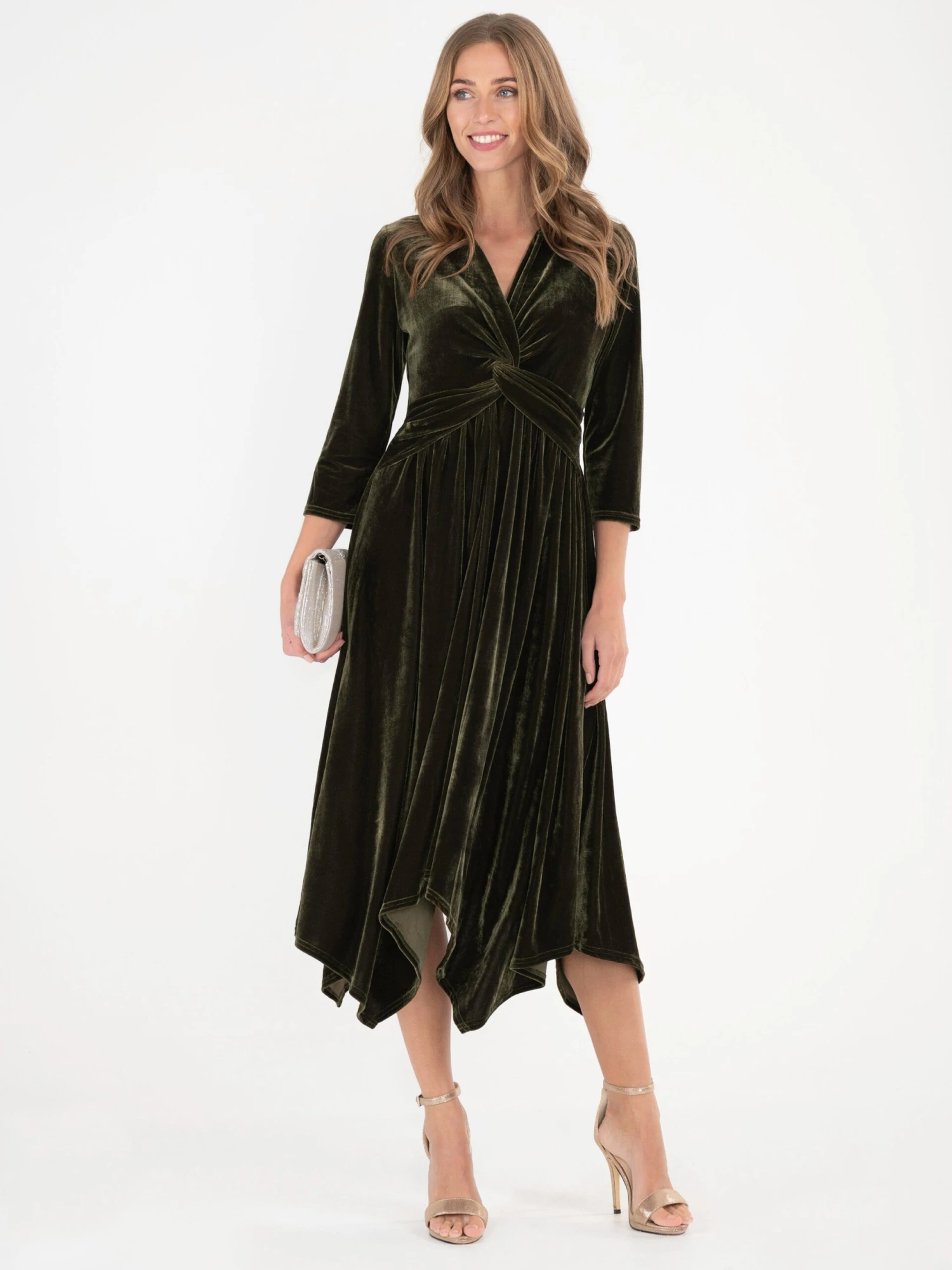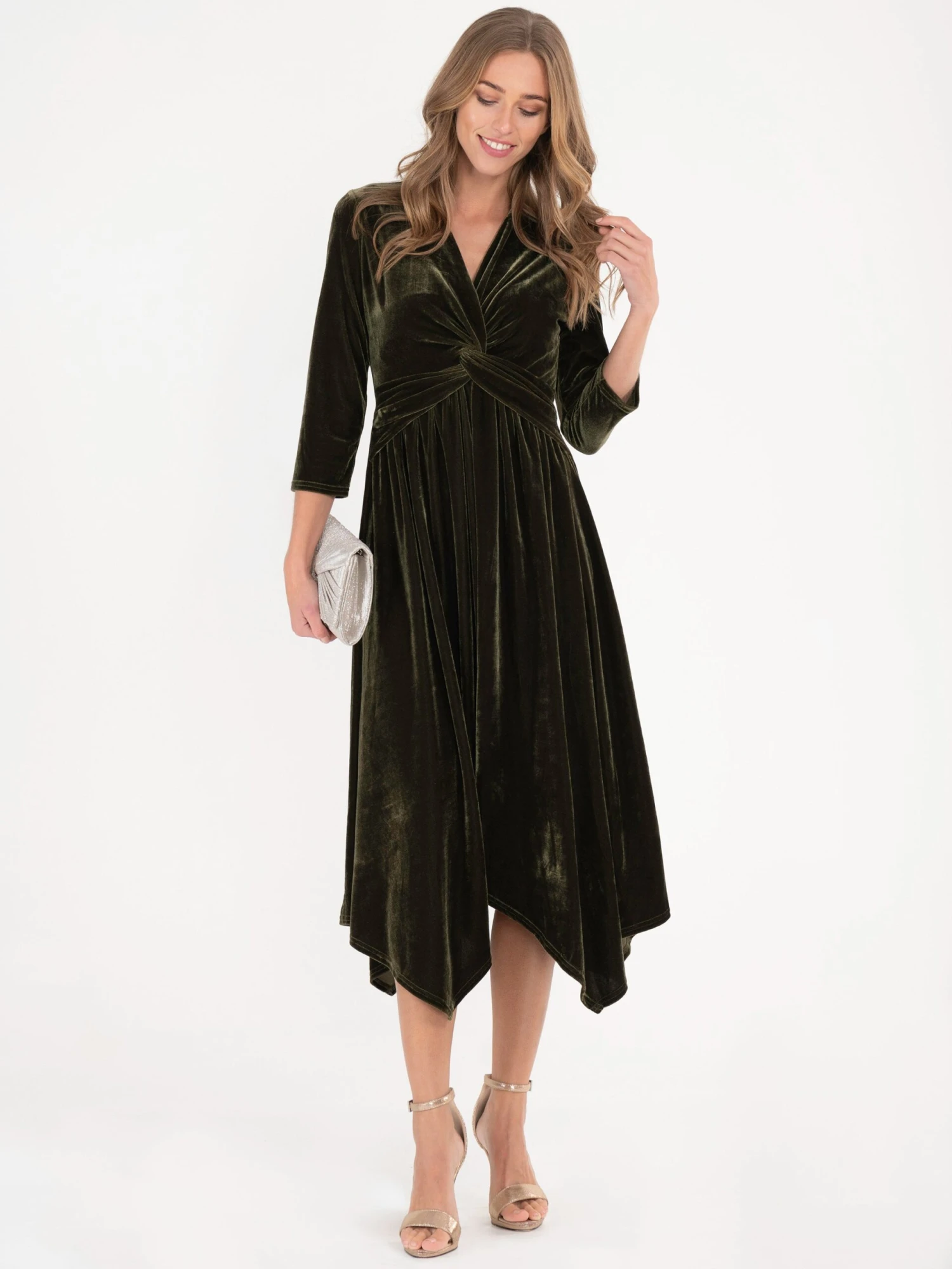Crafted from stretchy velvet in a contemporary midi silhouette, the dress from Jolie Moi is a sophisticated yet stylish party piece. Framed with twist knot front and trendy tiered hem gently hugs your shape, this dress is playfully sleek.ย Its V neckline can be styled with a fine pendant.ย Simply team with stiletto heels and a slip of lipstick for that party ready finish.