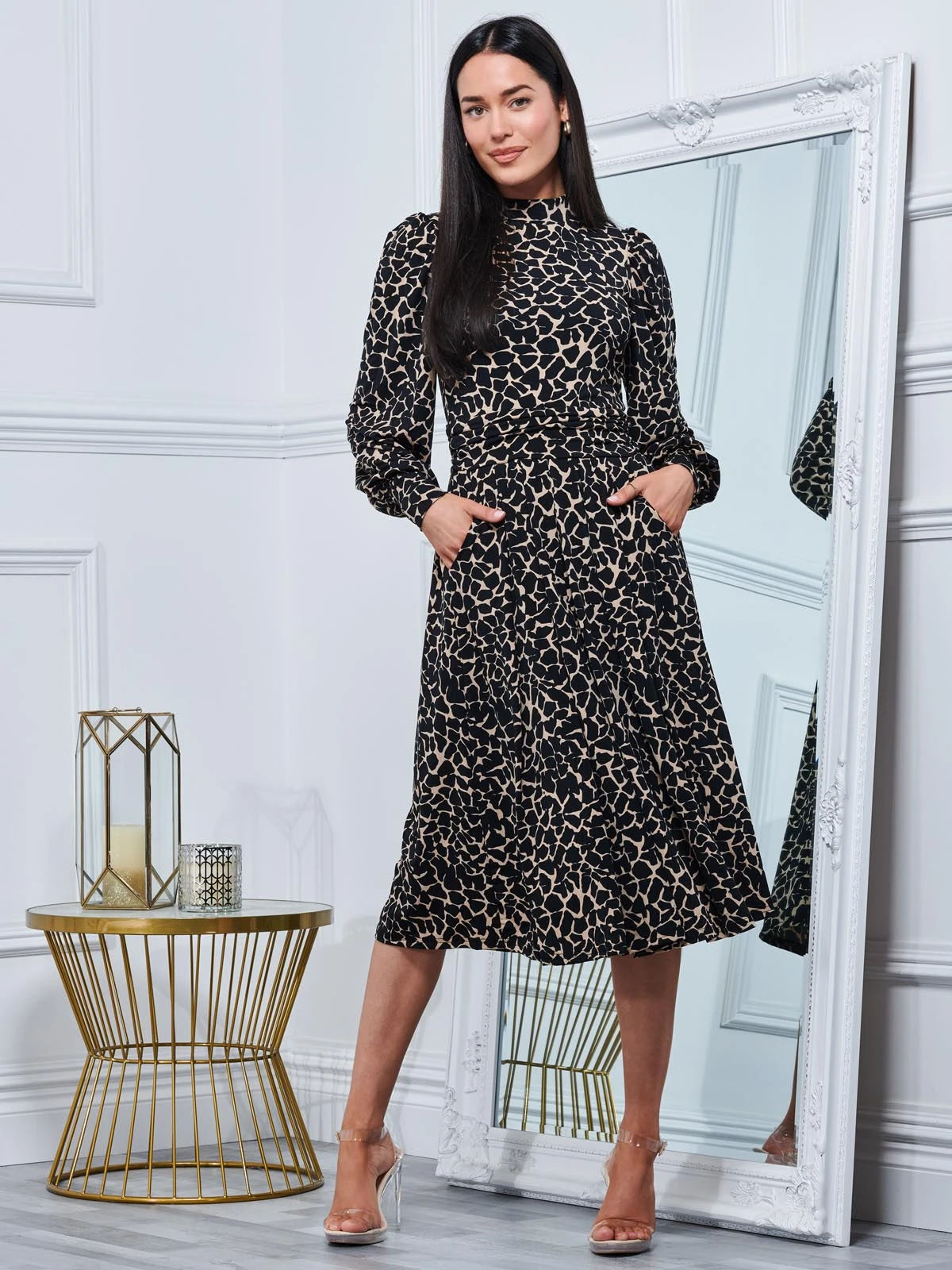 Smartening your look with this timeless midi dress from Jolie Moi, it is ideal for work or play. Framed with a turtle neckline and long sleeves, this piece nips you in all the right places. This effect is repeated around the elasticated waistline and long voluminous sleeves. A simple style that ensures an effortless, elegant look for smart or casual days.