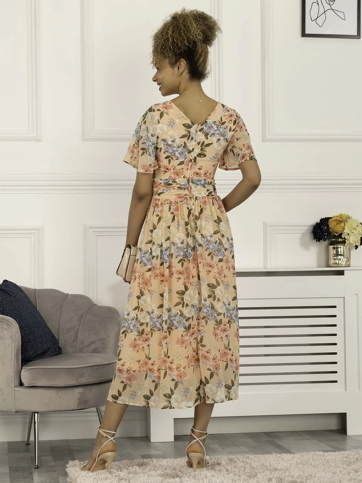 An elegant option for all your special occasions, the Mabilie maxi dress by Jolie Moi is fashioned with pretty florals for added charm. Made from soft chiffon mesh fabric, it’s framed with a beautiful round neckline and frilly angel sleeves. Fully lined and completed with concealed back zip fastening, it is comfortable and easy to wear. Add strappy sandals and a clutch for an event-ready look. Perfect for weddings and garden parties.