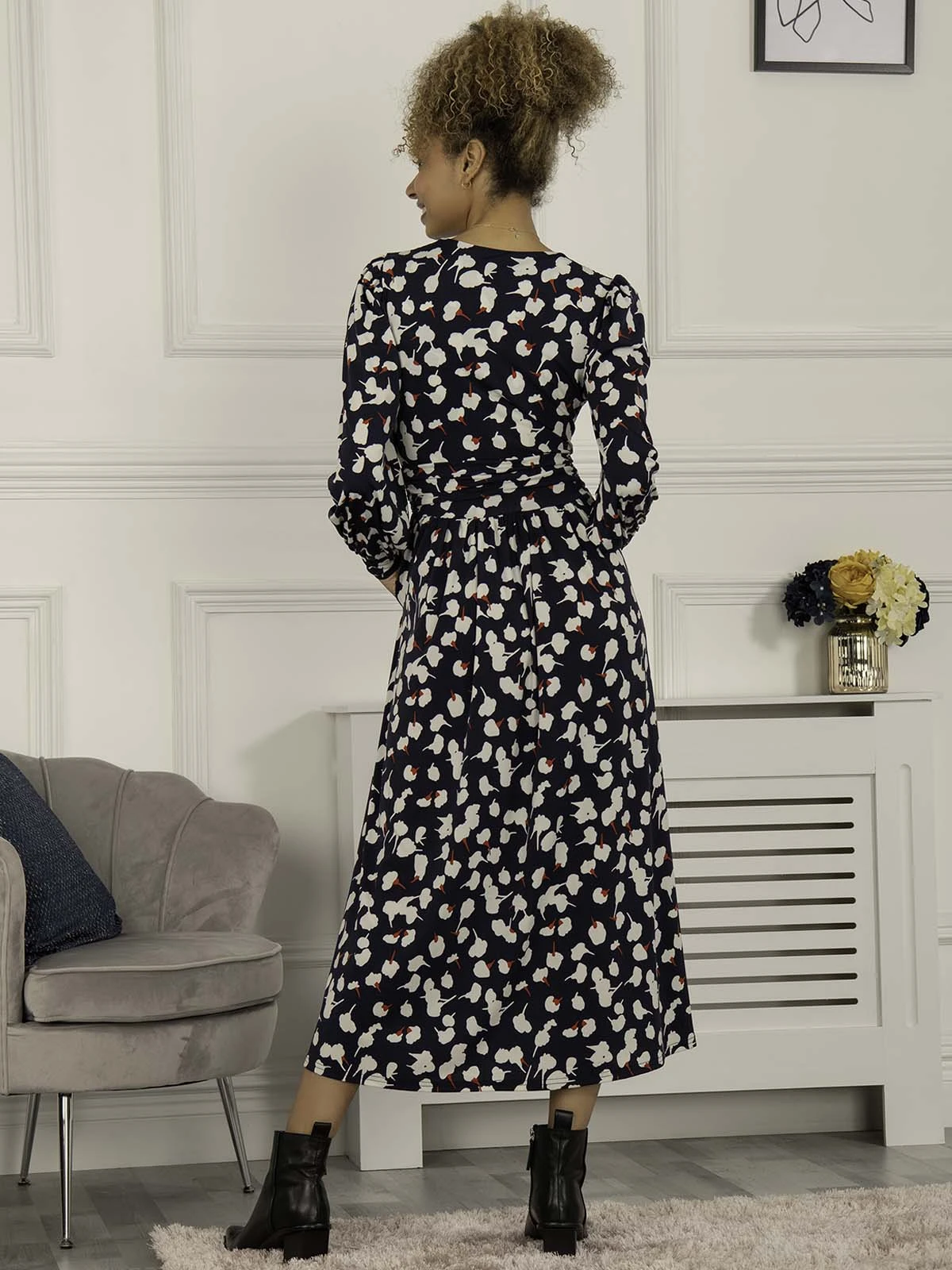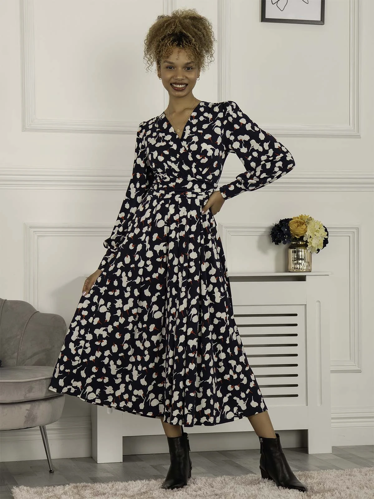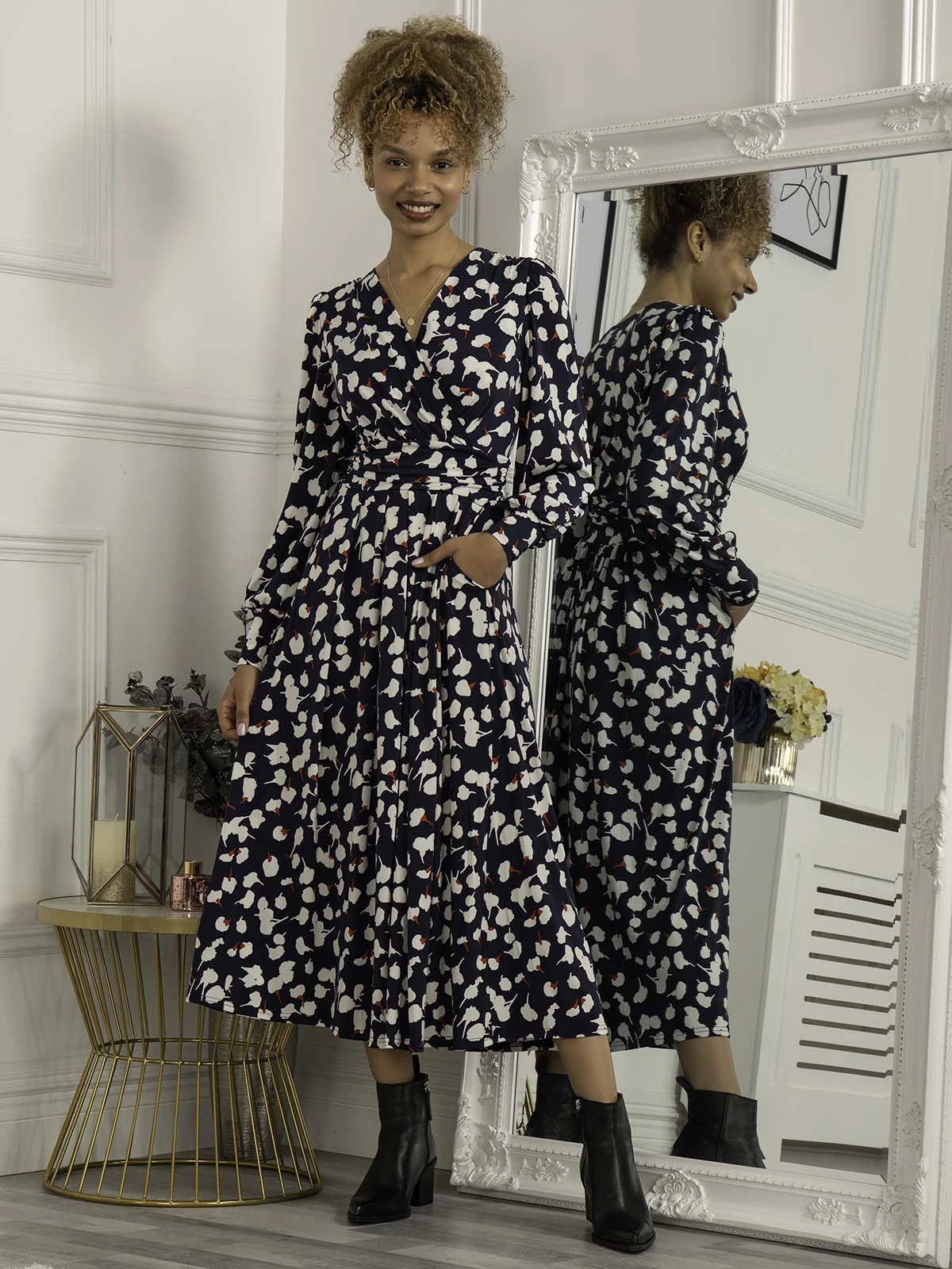 Graceful from top to bottom, this dress from Jolie Moi features a simple but striking animal print which makes it truly distinctive. Versatile with its elegant wrap over v-neckline and smart long sleeves, it is completed with functional pockets and a ruched elasticated waistband which draws in your silhouette for a form-flattering fit. This piece pulls on with sandals for summer days in the sun.