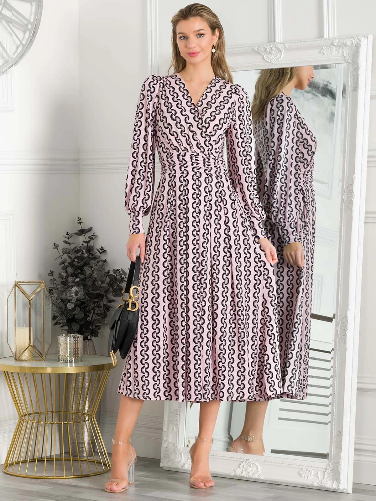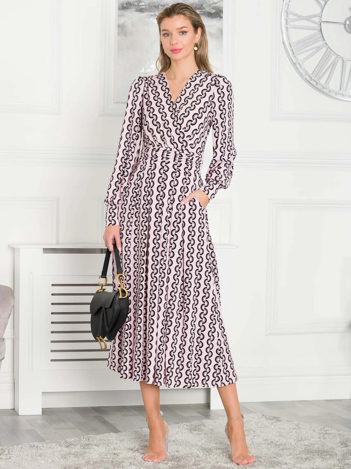 Graceful from top to bottom, this dress from Jolie Moi features a simple but striking animal print which makes it truly distinctive. Versatile with its elegant wrap over v-neckline and smart long sleeves, it is completed with functional pockets and a ruched elasticated waistband which draws in your silhouette for a form-flattering fit. This piece pulls on with sandals for summer days in the sun.