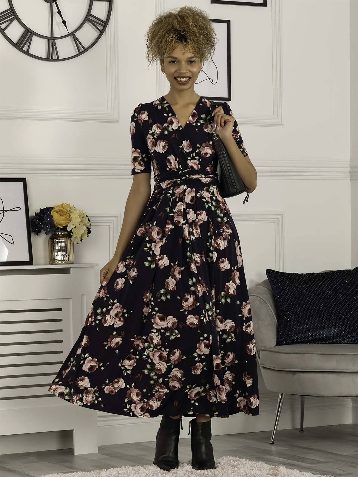 Be the first to review “Kiera Wrap Front Maxi Dress, Navy Floral” Cancel reply