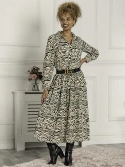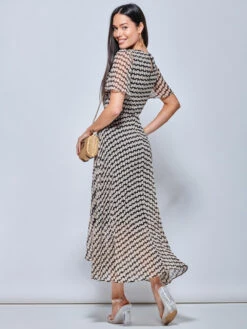 Add a splash of colour to your wardrobe this season with the Qyara midi dress from Jolie Moi. Covered in a striking geometric pattern print, and complimenting your curves with its bodycon shape, short puff sleeves, and a below the knee hem. Crafted from our premium non-static and crease-proof jersey fabric.