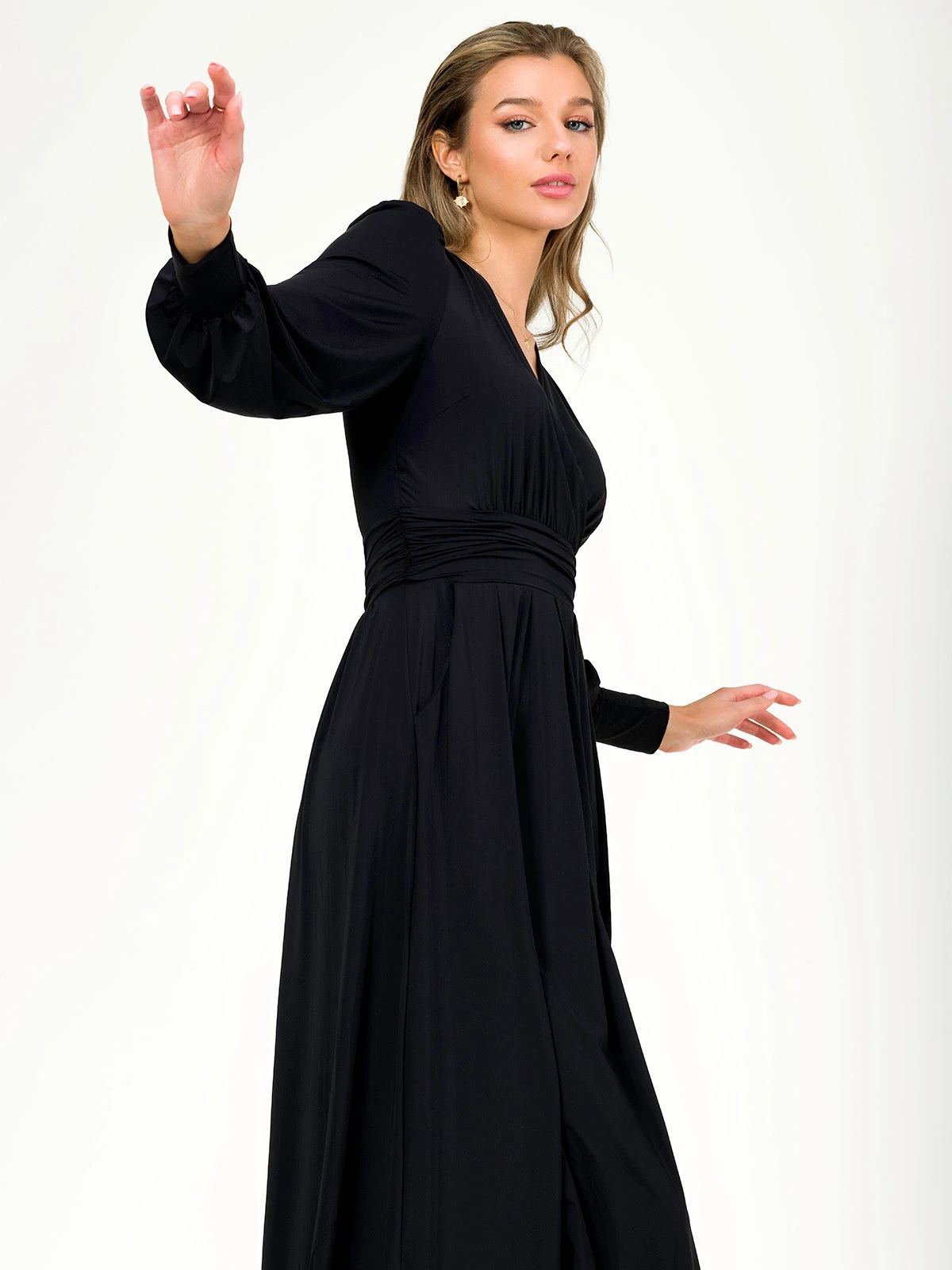 Meet your new wedding guest dress. Introducing the Rashelle maxi dress to the Jolie Moi lineup this season. Crafted from our super soft jersey material the dress features a plain design with long sleeves, a ruched waistband and long flowing hemline. Pair with strappy heels and a small clutch to complete the look and become the centre of attention at your next occasion.