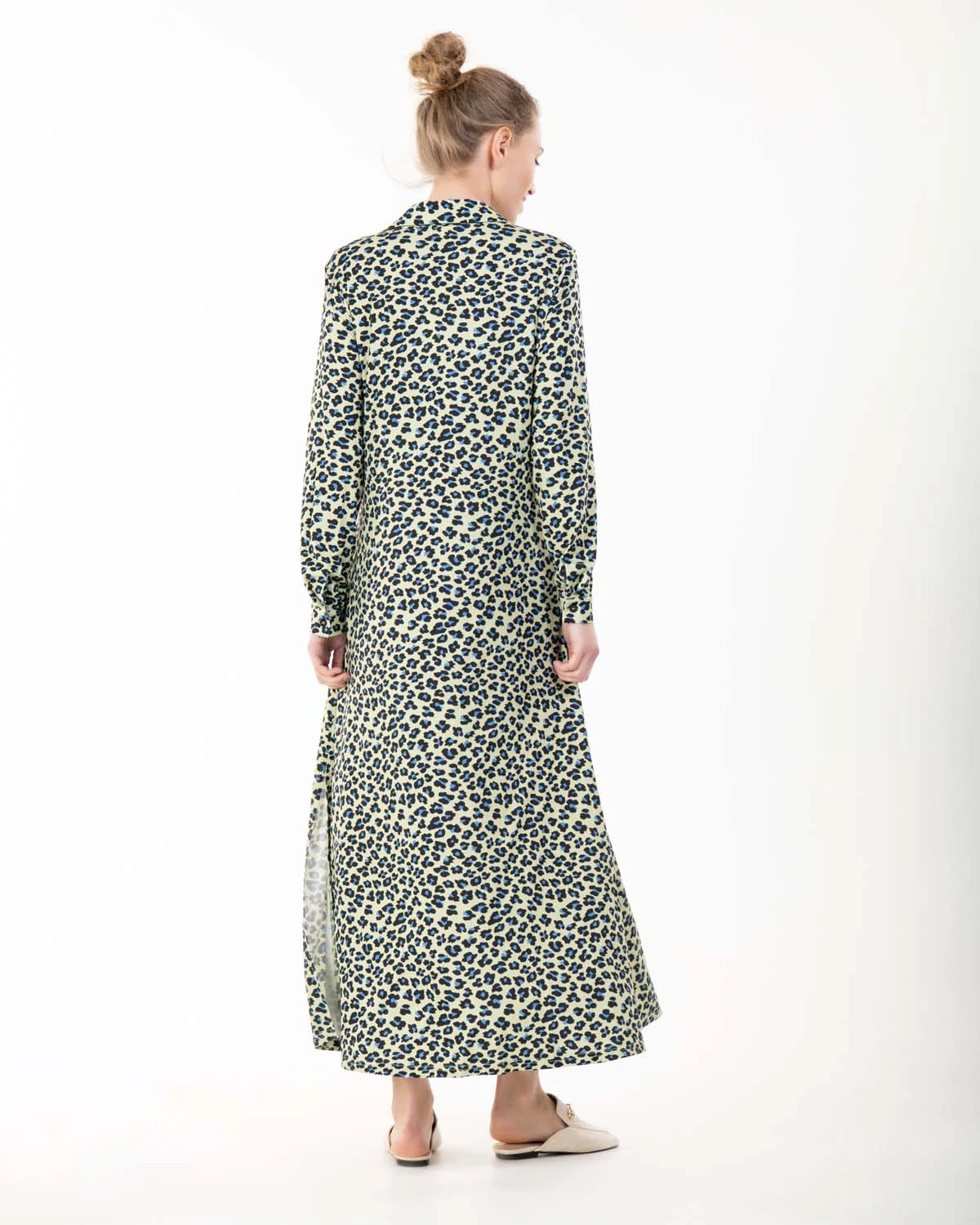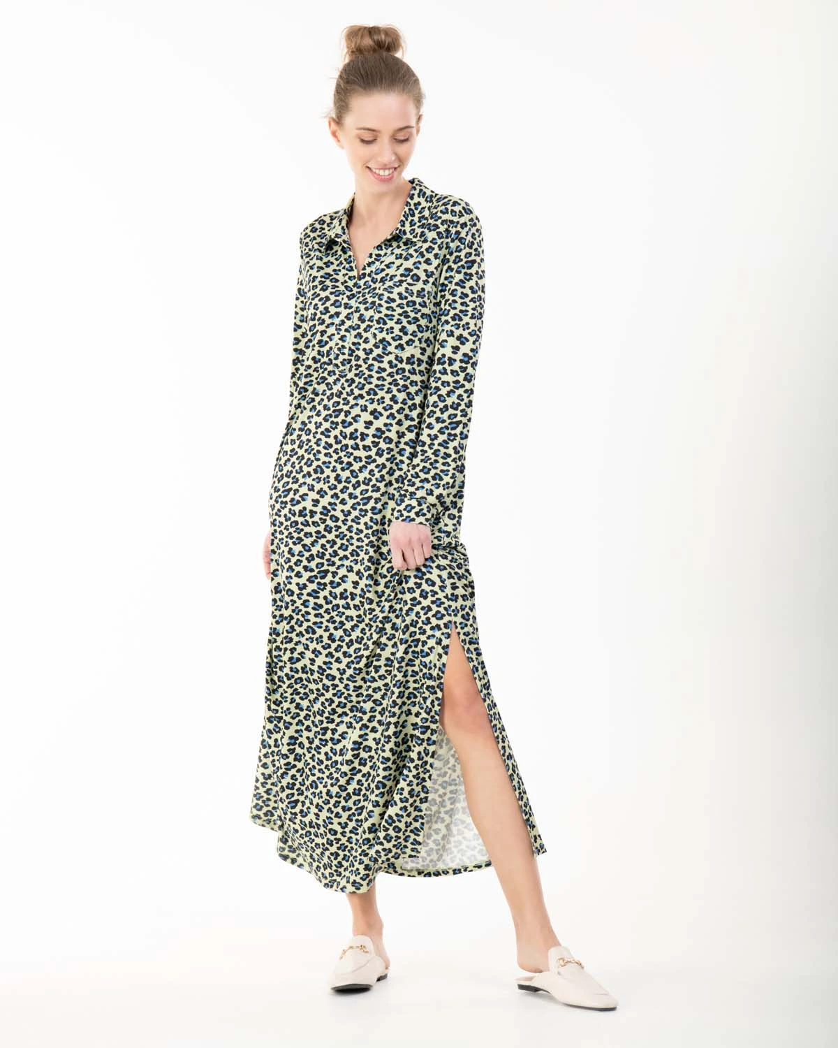 Take a look at our gorgeous light yellow leopard print maxi shirt dress. With a side slit and long sleeves. Will fit a size 8-10. This dress is a one-of-a-kind Jolie Moi item.